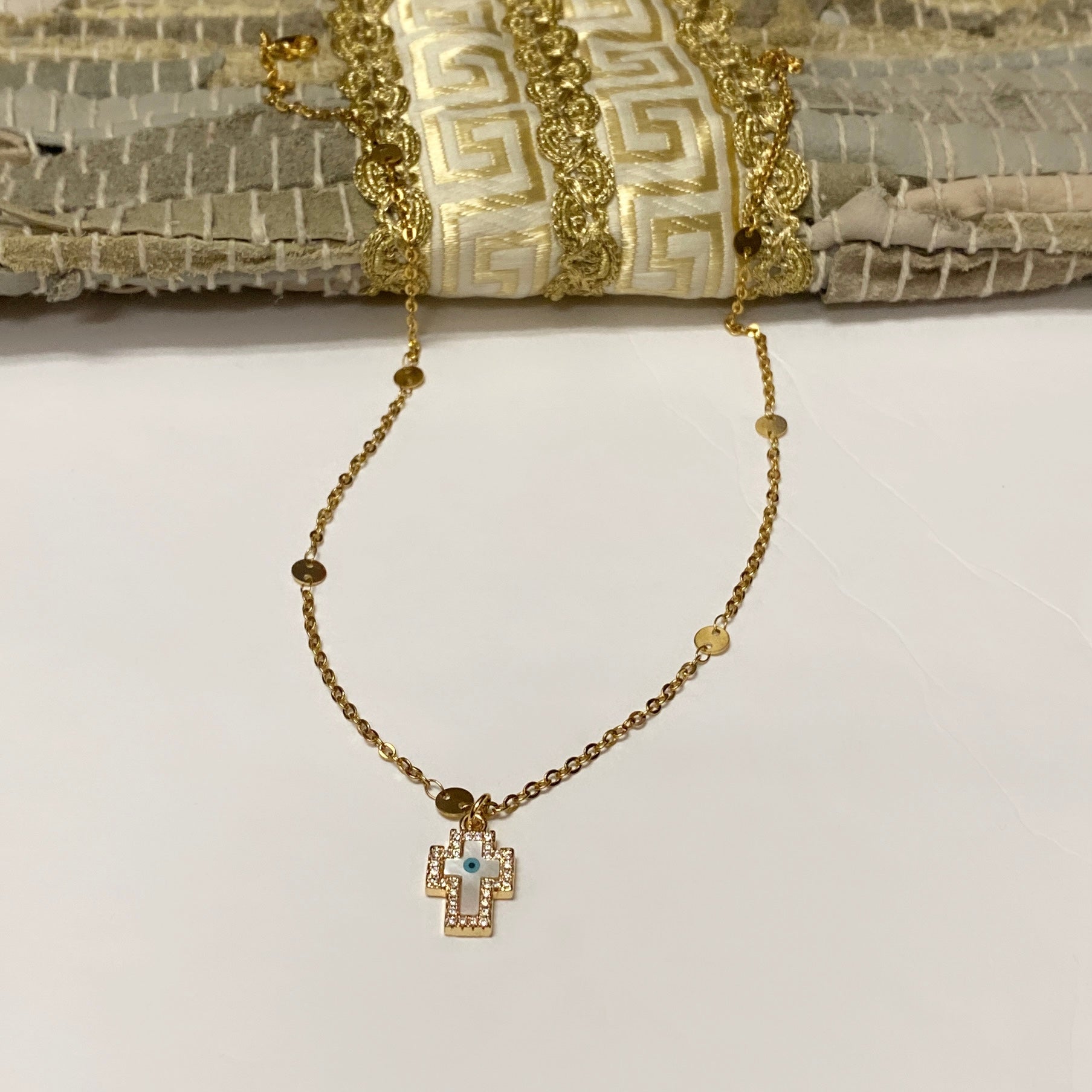 #2 Chaîne fantaisie en acier inoxydable plaqué or et croix de coquillage délicate avec fermoir mousqueton mesurant 17,5 pouces