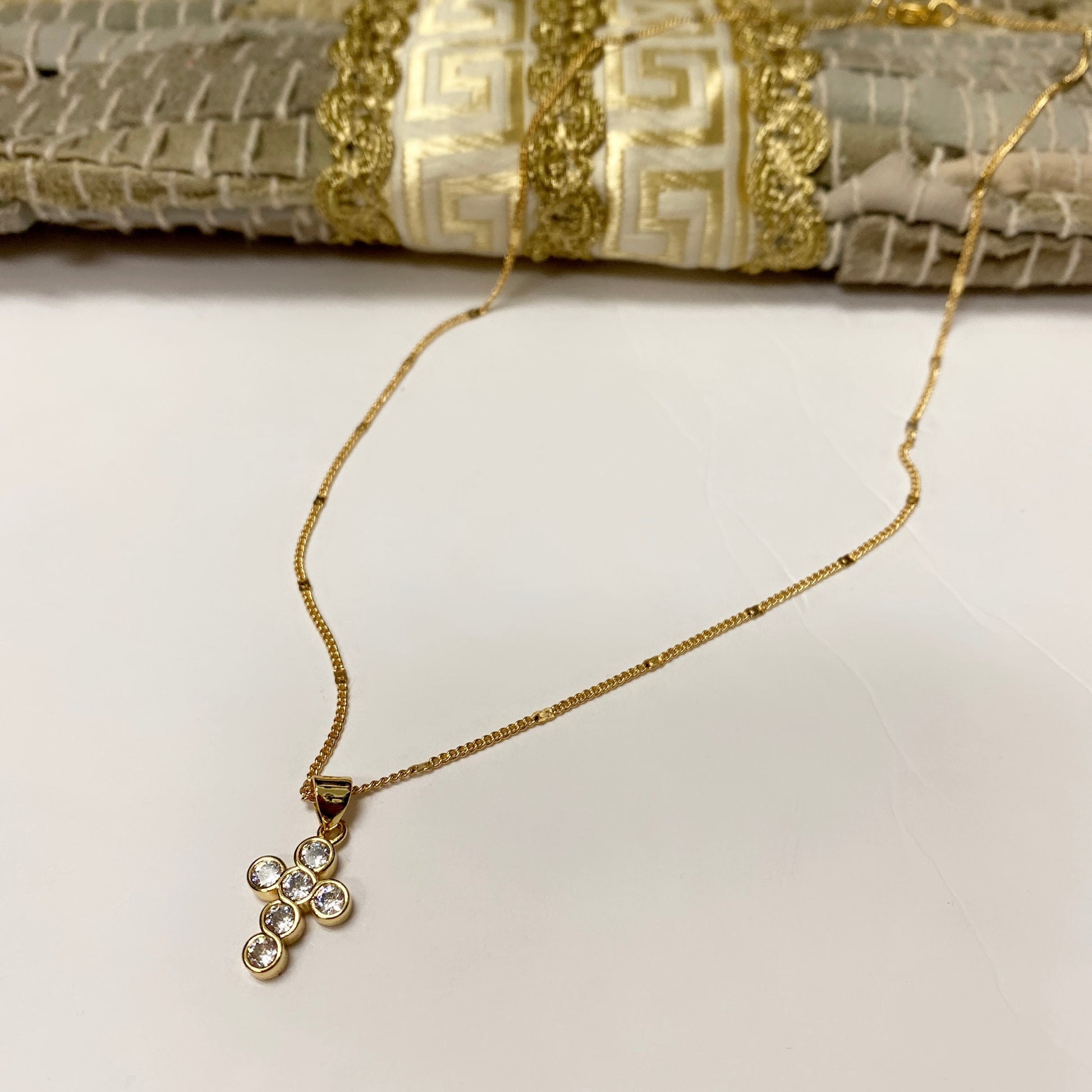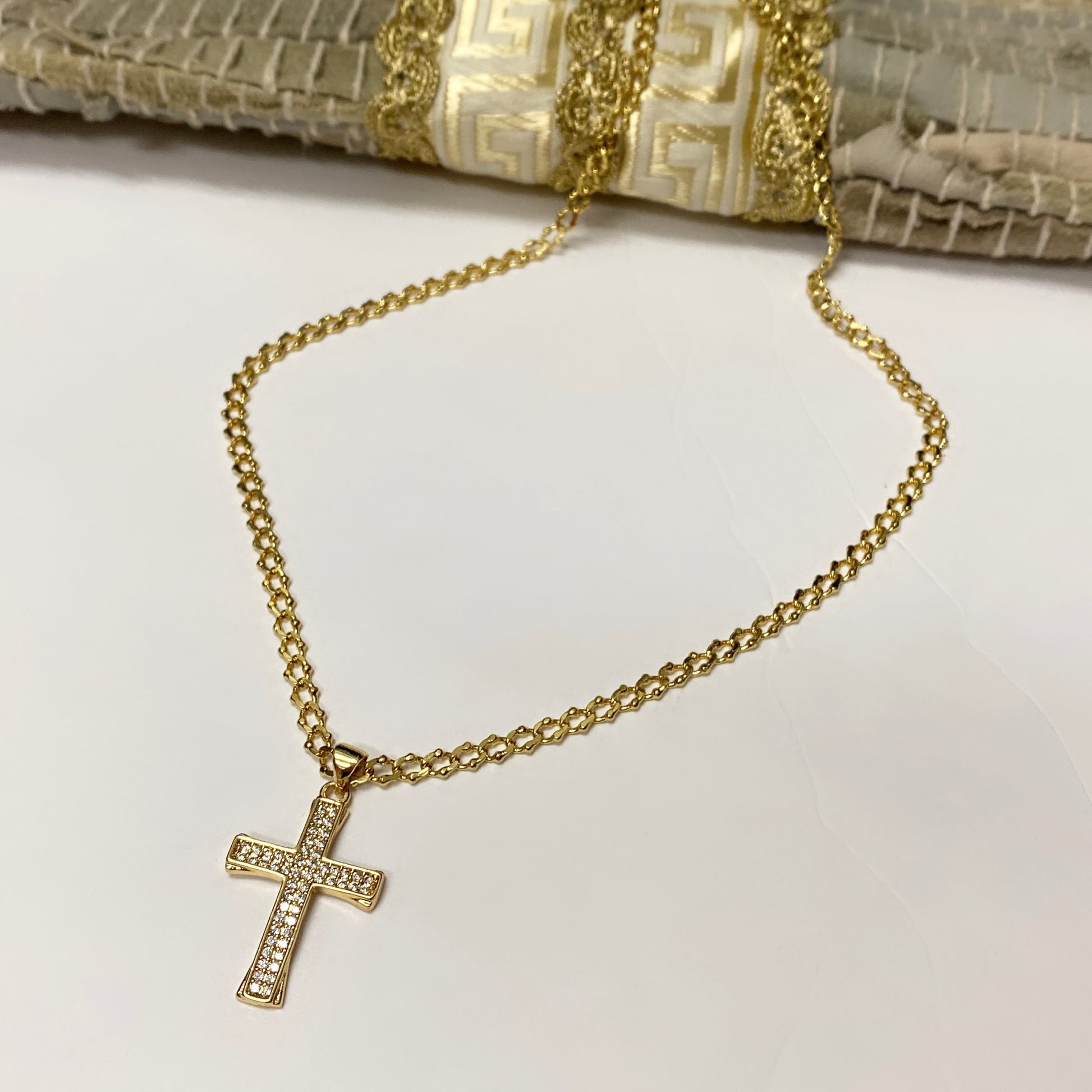 #4 Chaîne en laiton plaqué or avec mini croix en zircone cubique et fermoir mousqueton mesurant 17,5 pouces