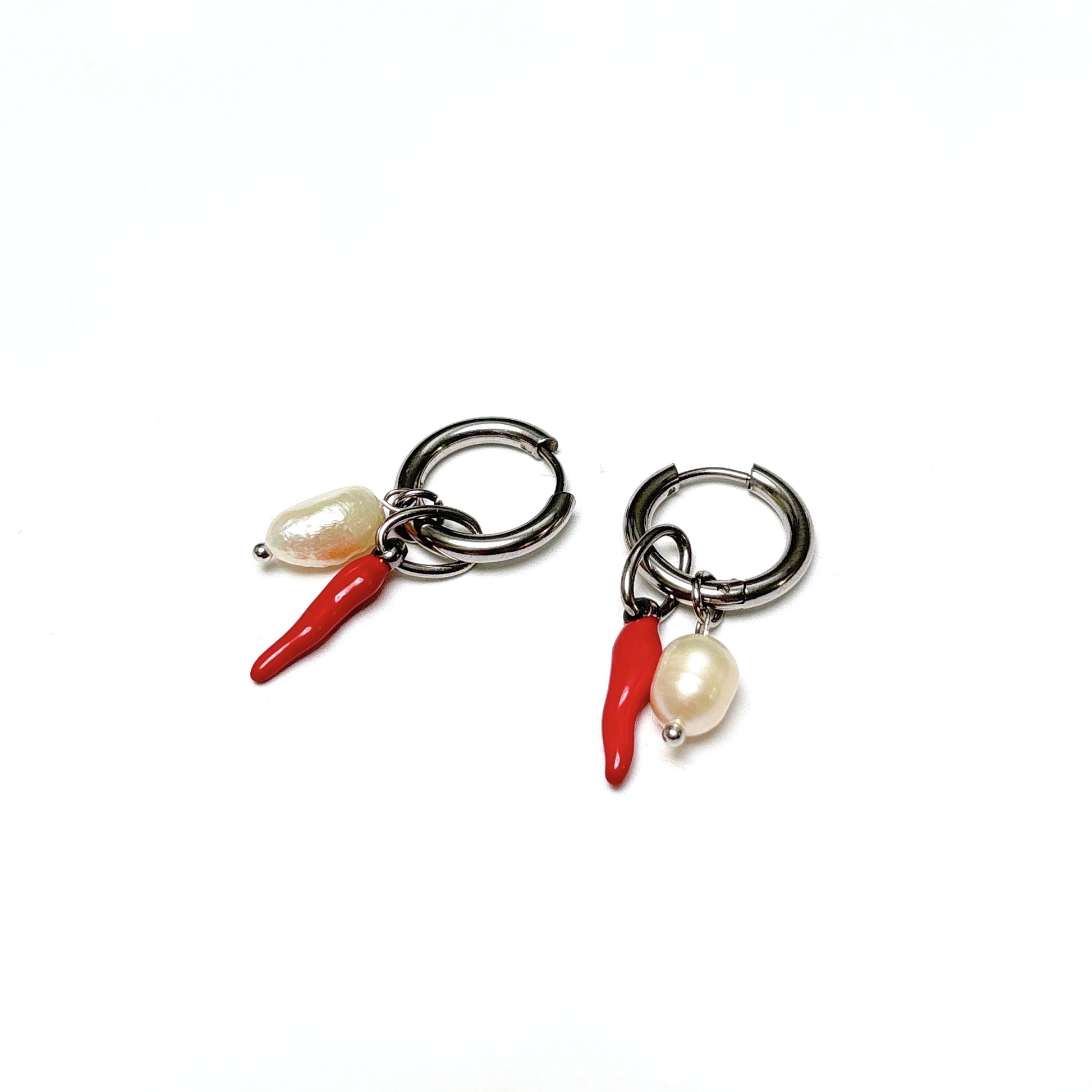 Soyez polyvalent avec nos BOUCLES D'OREILLES ITALIA ! Ces boucles d'oreilles ludiques sont dotées de deux breloques amovibles - une perle et un cornicello - vous offrant des options de style infinies. Associées au délicat clou d'oreille en perle de fleur, vous ne manquerez jamais de façons d'accessoiriser. Charmez votre chemin à travers n'importe quelle occasion !