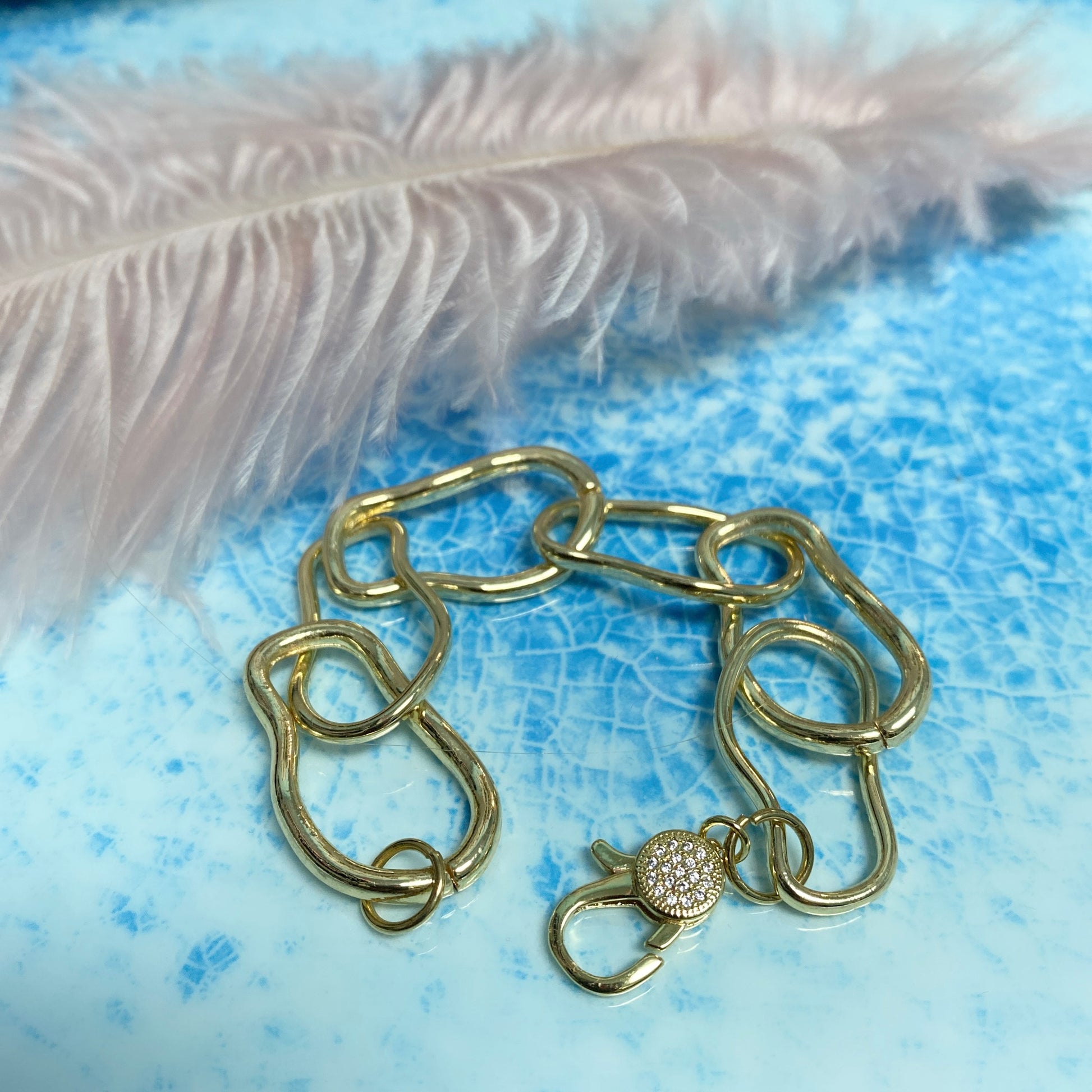 #3 grosse chaîne en laiton plaqué or avec fermoir mousqueton fantaisie en zircone cubique