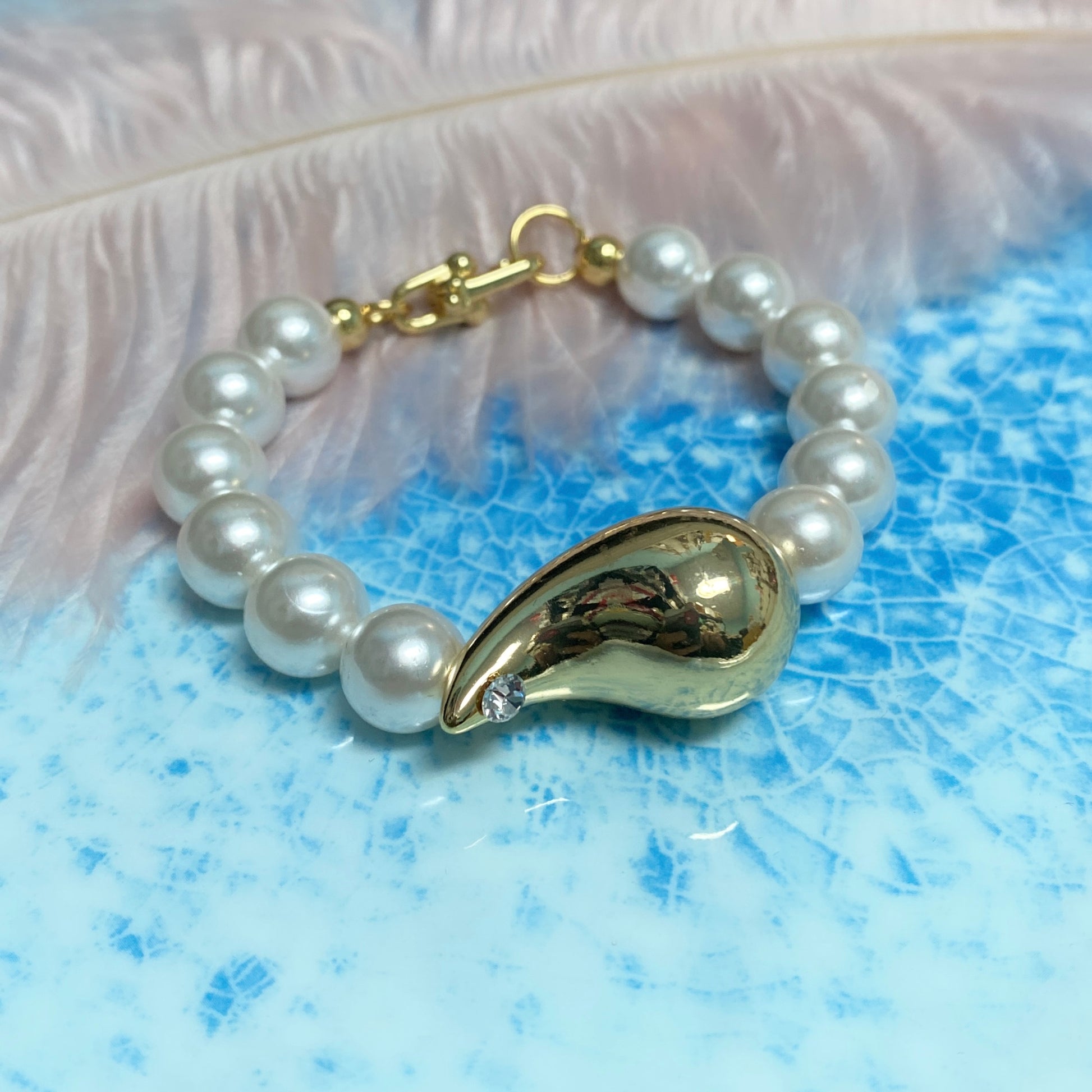 Perles de coquillage #2 avec breloque en forme de larme en laiton plaqué or et fermoir mousqueton fantaisie