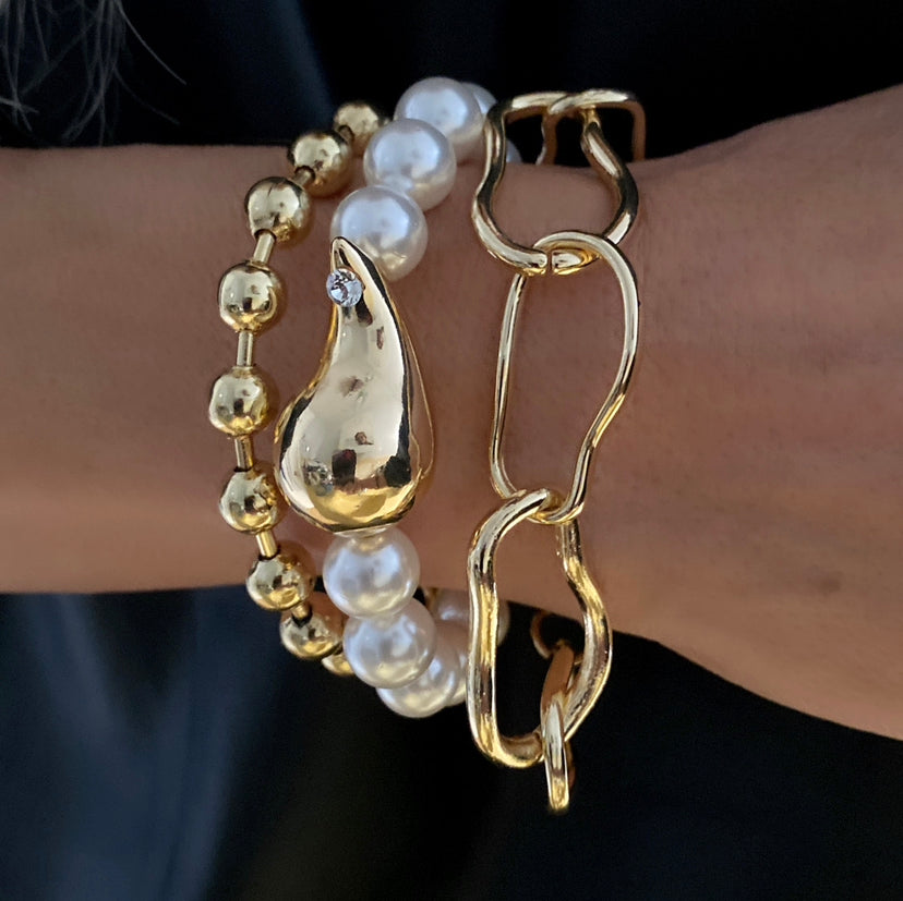 Superbes chaînes en laiton plaqué or avec perles de coquillage. Les bracelets mesurent 7,5" environ