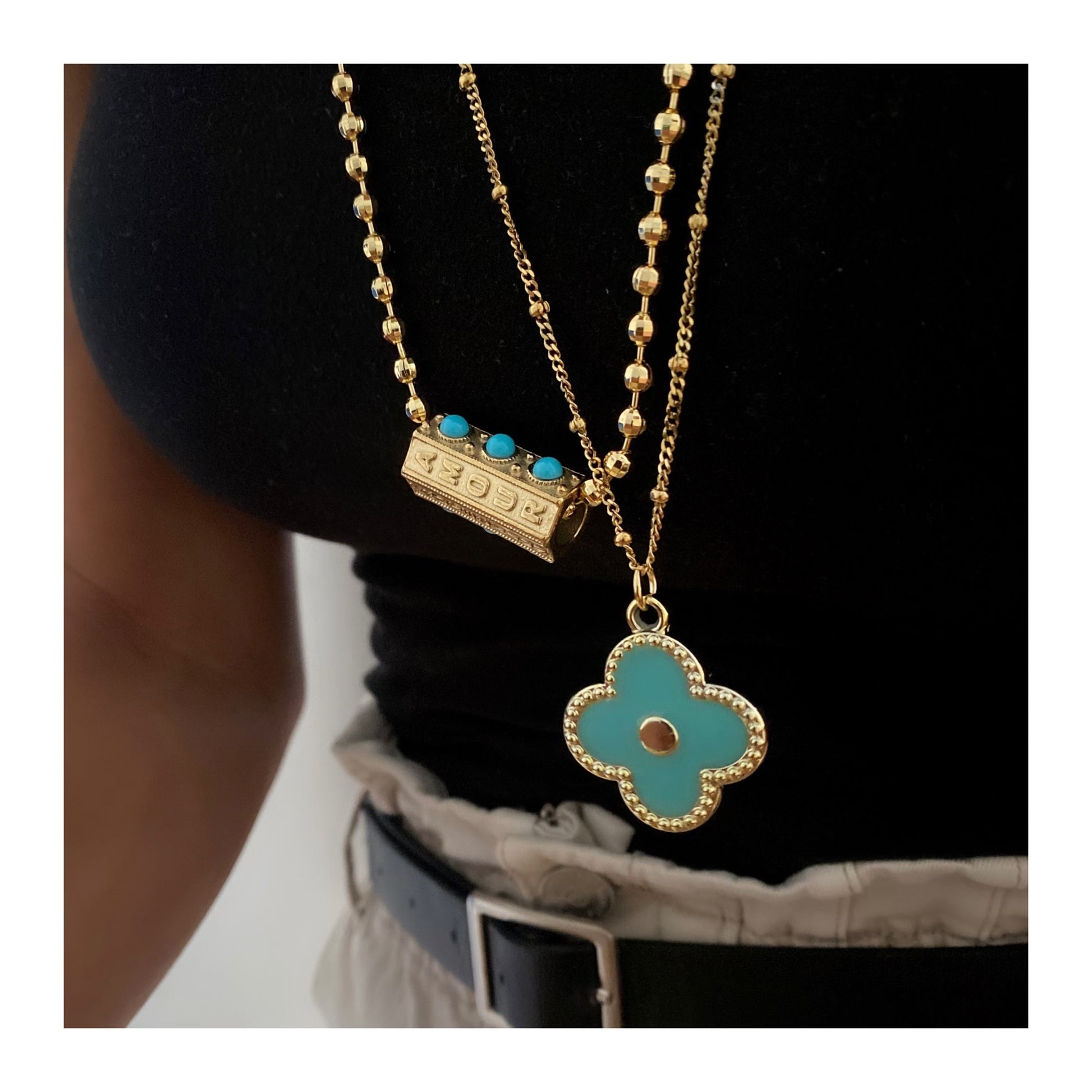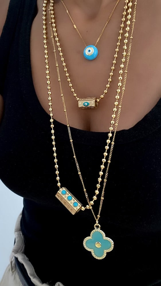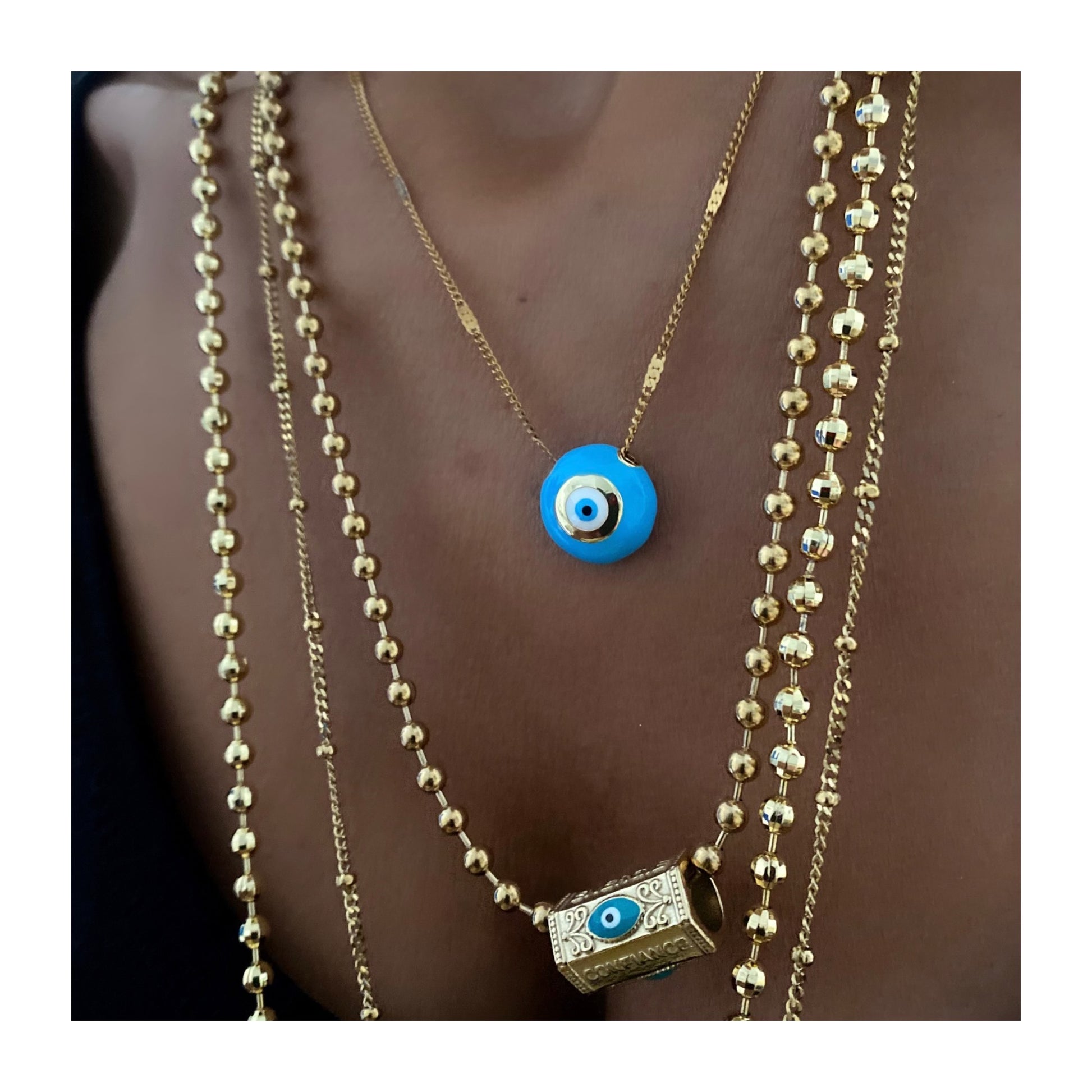 Variété de chaînes en laiton et en acier inoxydable et de magnifiques accents pour les yeux. Porté séparément ou superposé pour un look magnifique !