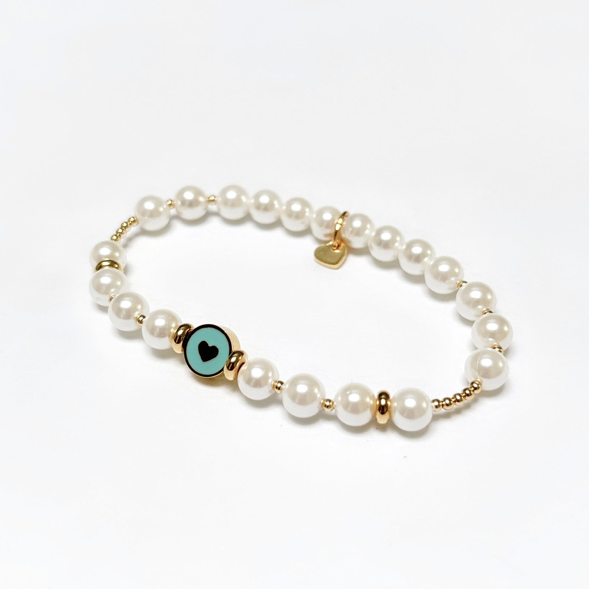 2. Bracelet extensible en perles avec cœur (7" extensible)