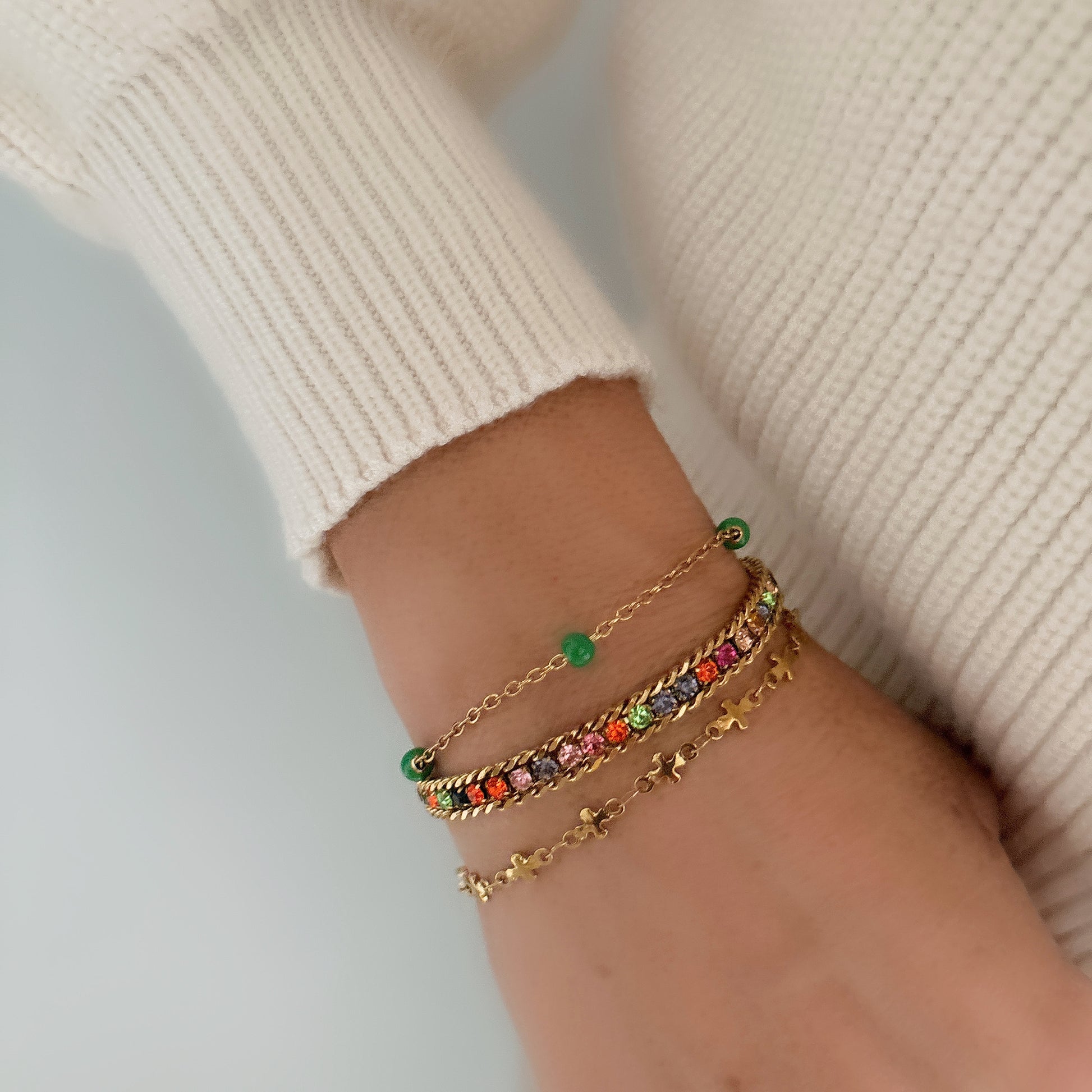 Transformez votre look avec les BRACELETS LYSSA ! Ces bracelets empilables sont dotés d'une chaîne en émail vert vif et de zircons cubiques multicolores étincelants. La jolie chaîne à maillons croisés ajoute une touche d'élégance. Rehaussez n'importe quelle tenue et ajoutez de la couleur avec les BRACELETS LYSSA !