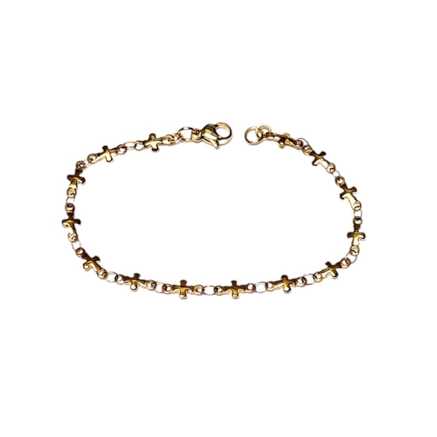 3. Chaîne en acier inoxydable plaqué or avec croix - 7"