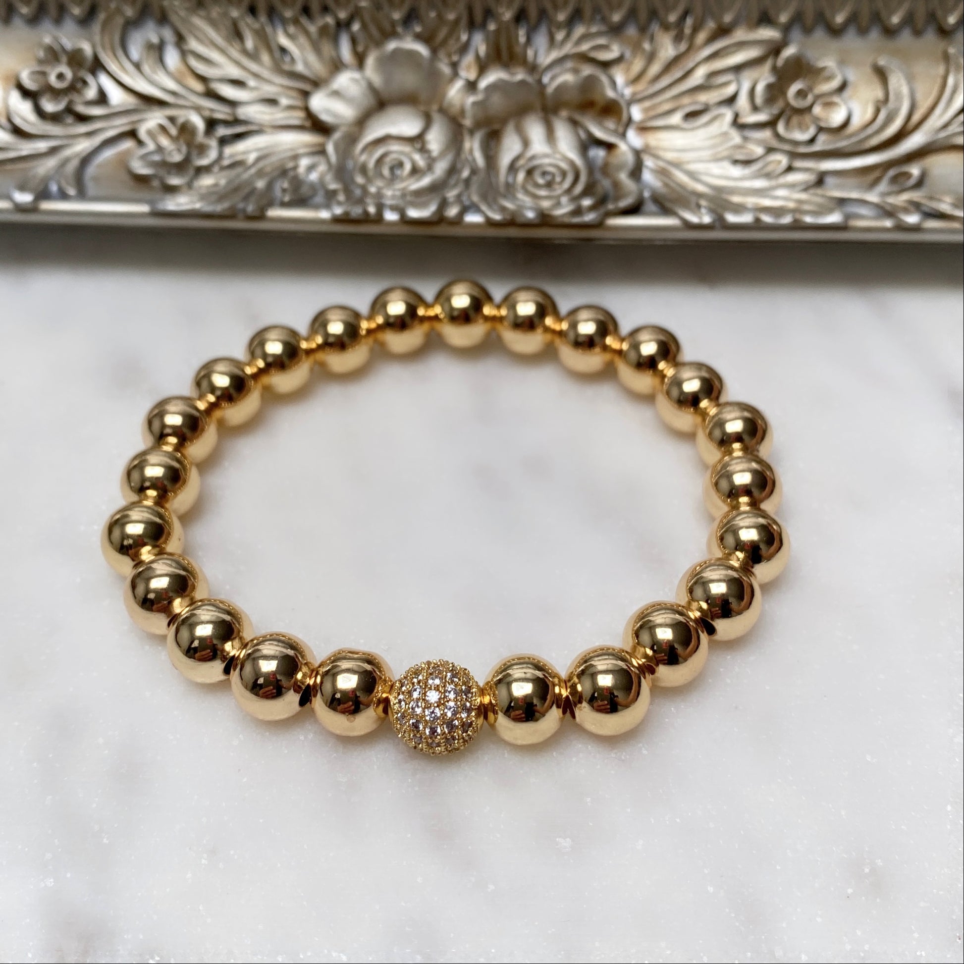 #3 Perles en laiton plaqué vieux G 8mm avec perle cz (extensible)