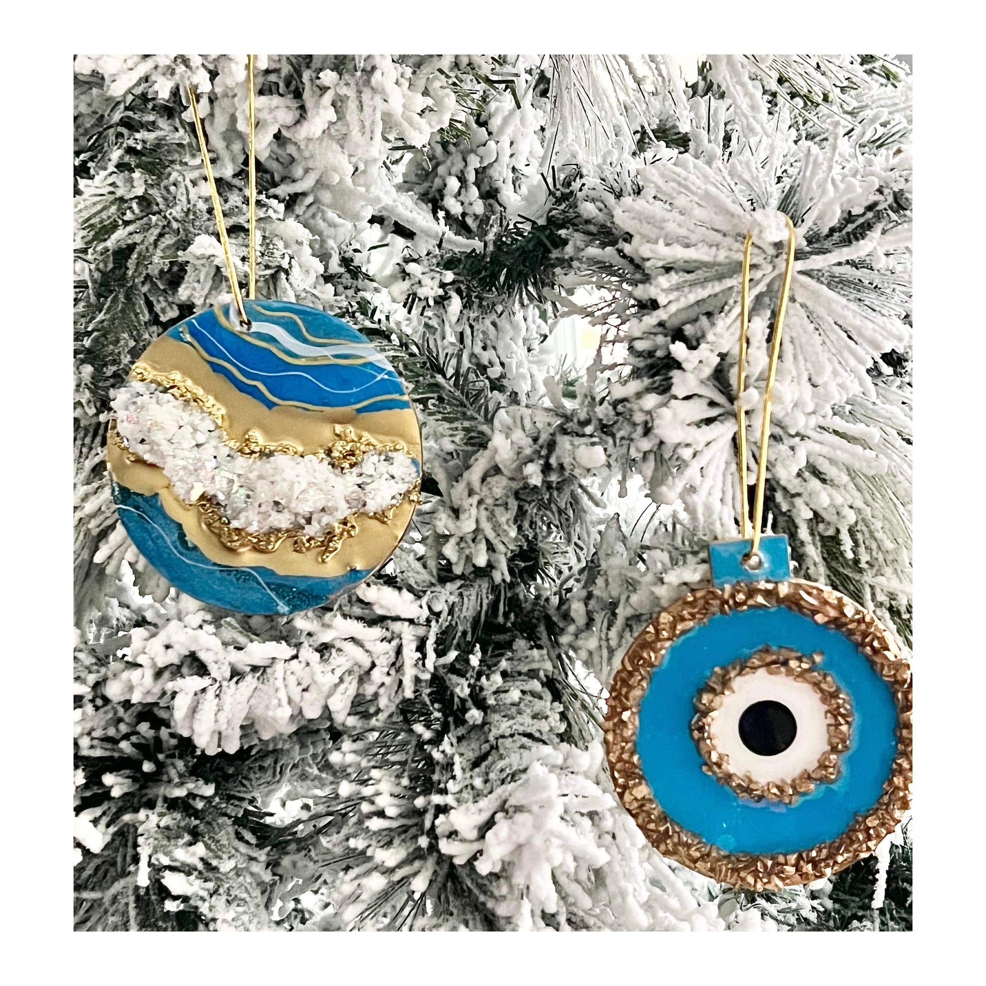Superbes ornements faits à la main contre le mauvais œil avec ornement artistique assorti.