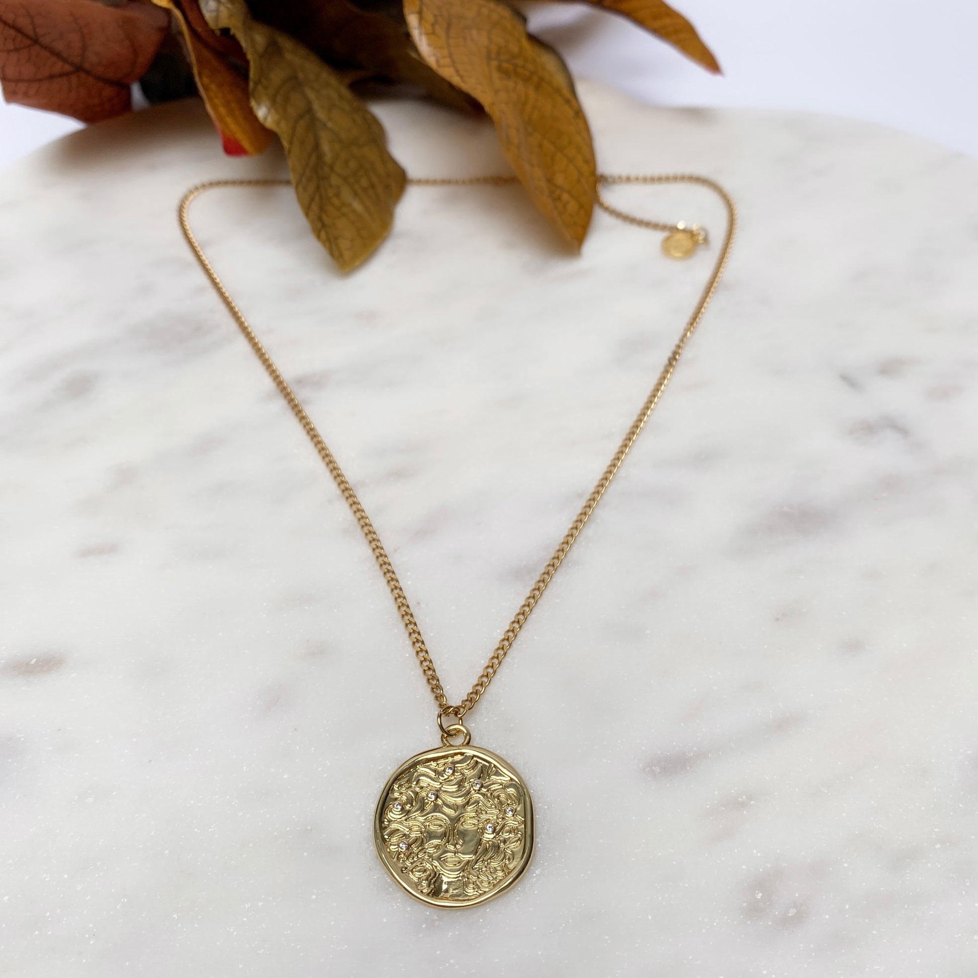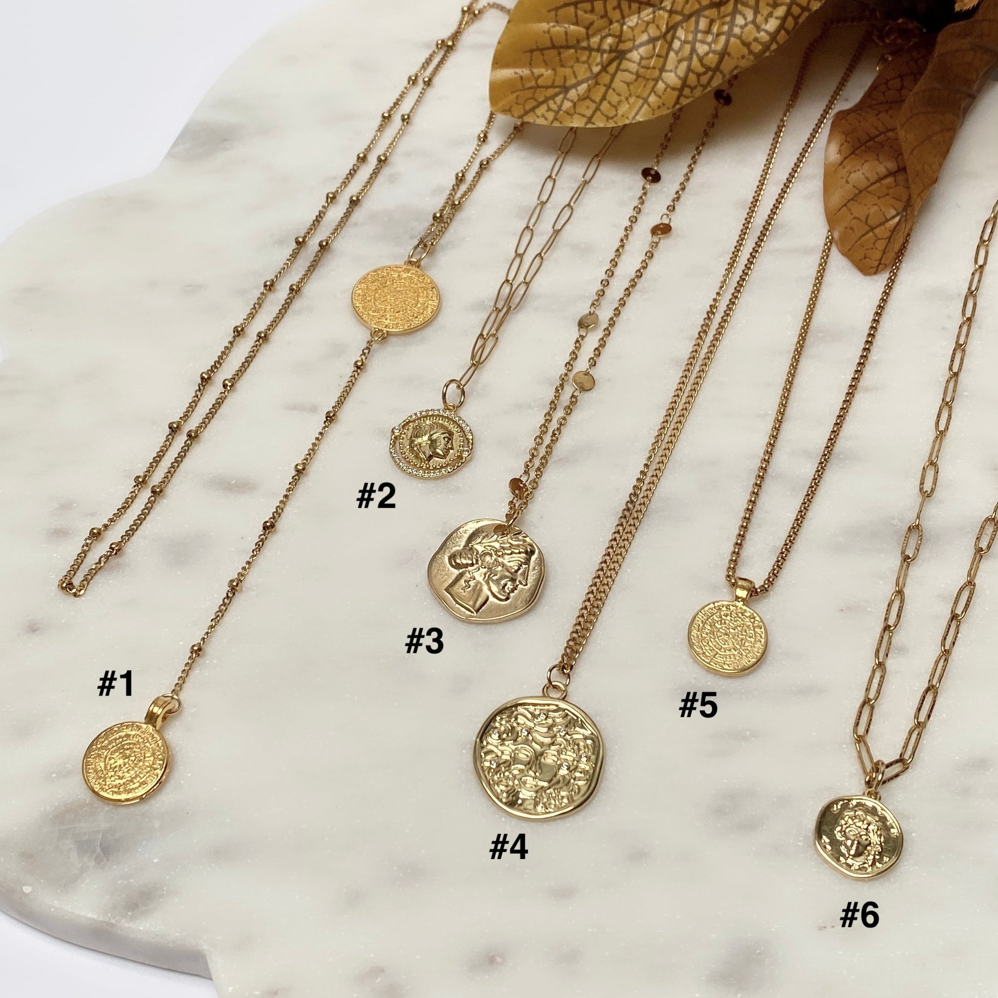 Chaînes en acier inoxydable plaqué or avec une variation de pendentifs pièces de monnaie