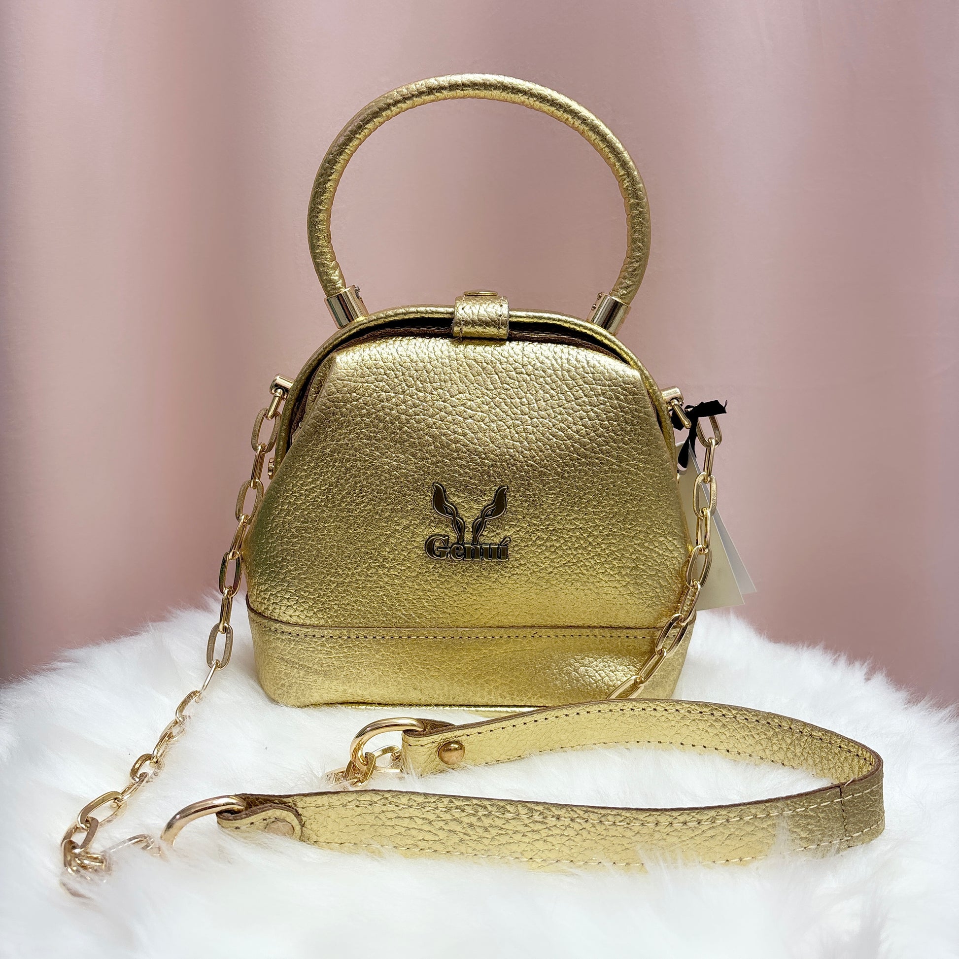 Le MERLIN BUCKET est un petit sac en cuir alliant luxe et polyvalence. Doté d'une poignée élégante et d'une chaîne avec une bandoulière en cuir, il permet de créer deux looks élégants. Disponible en crème et doré, ce sac sublimera n'importe quelle tenue et ajoutera une touche d'exclusivité à votre garde-robe.