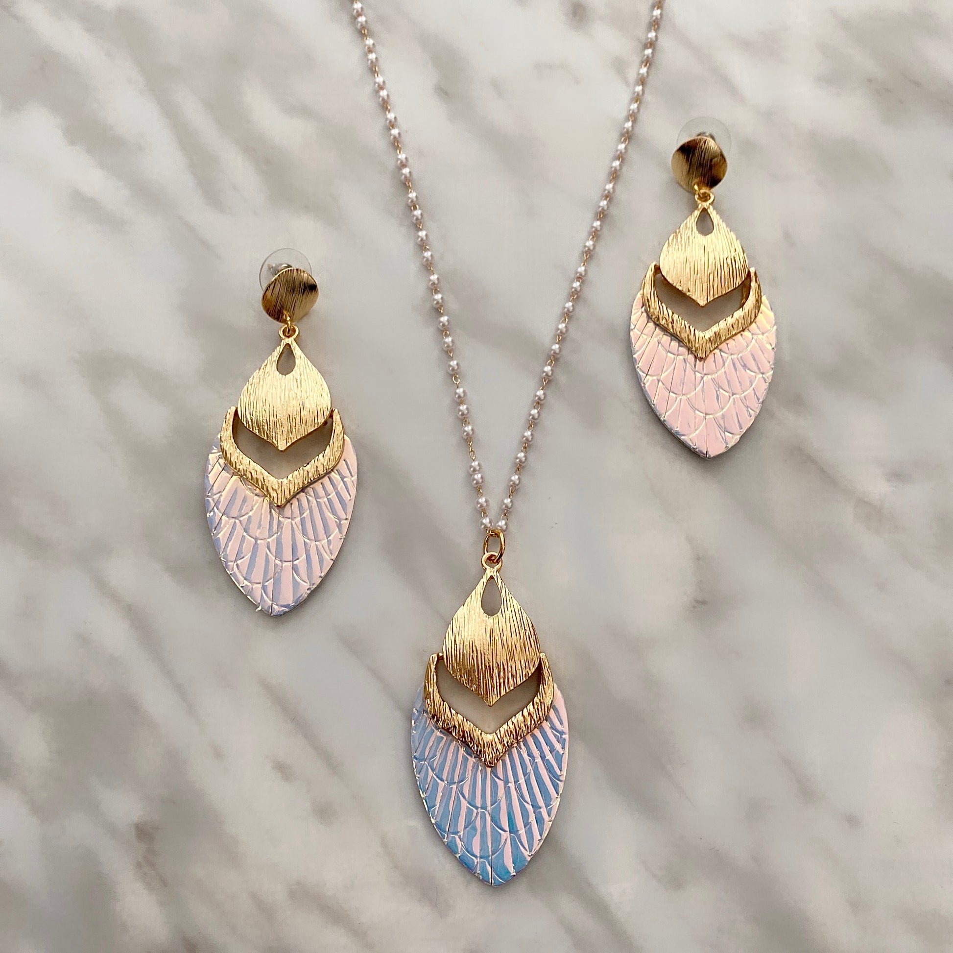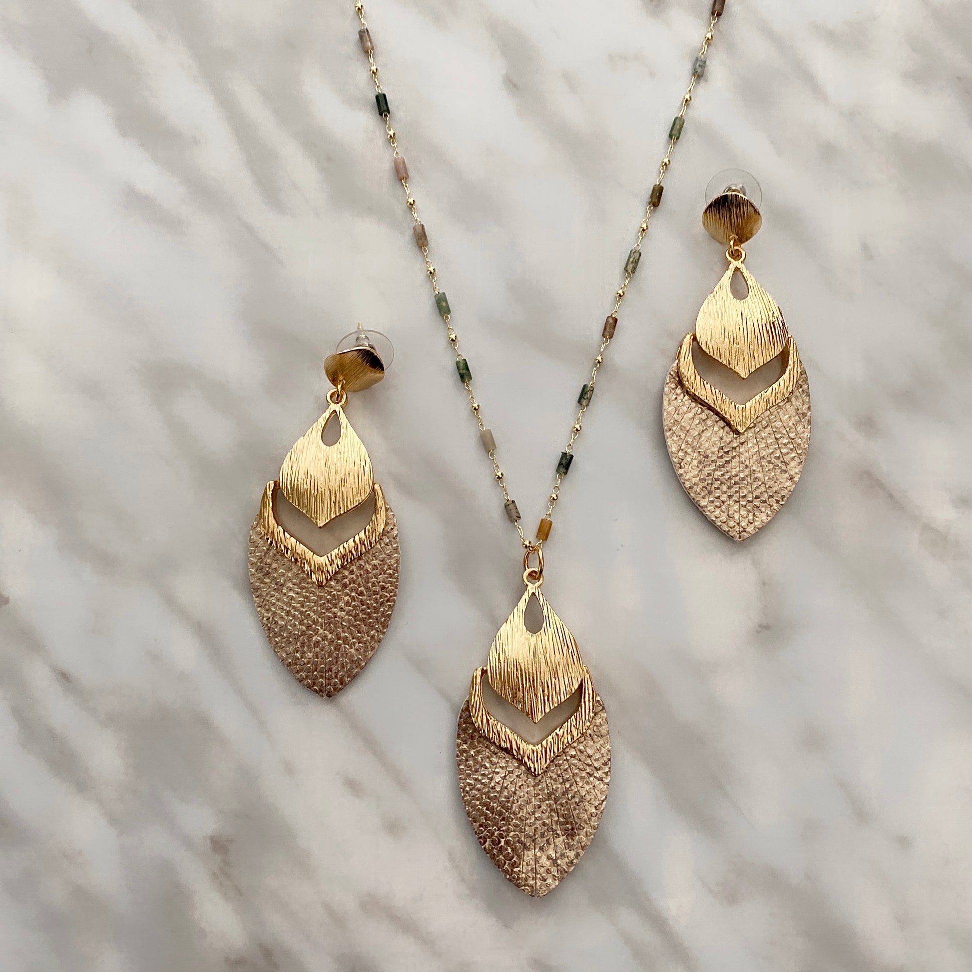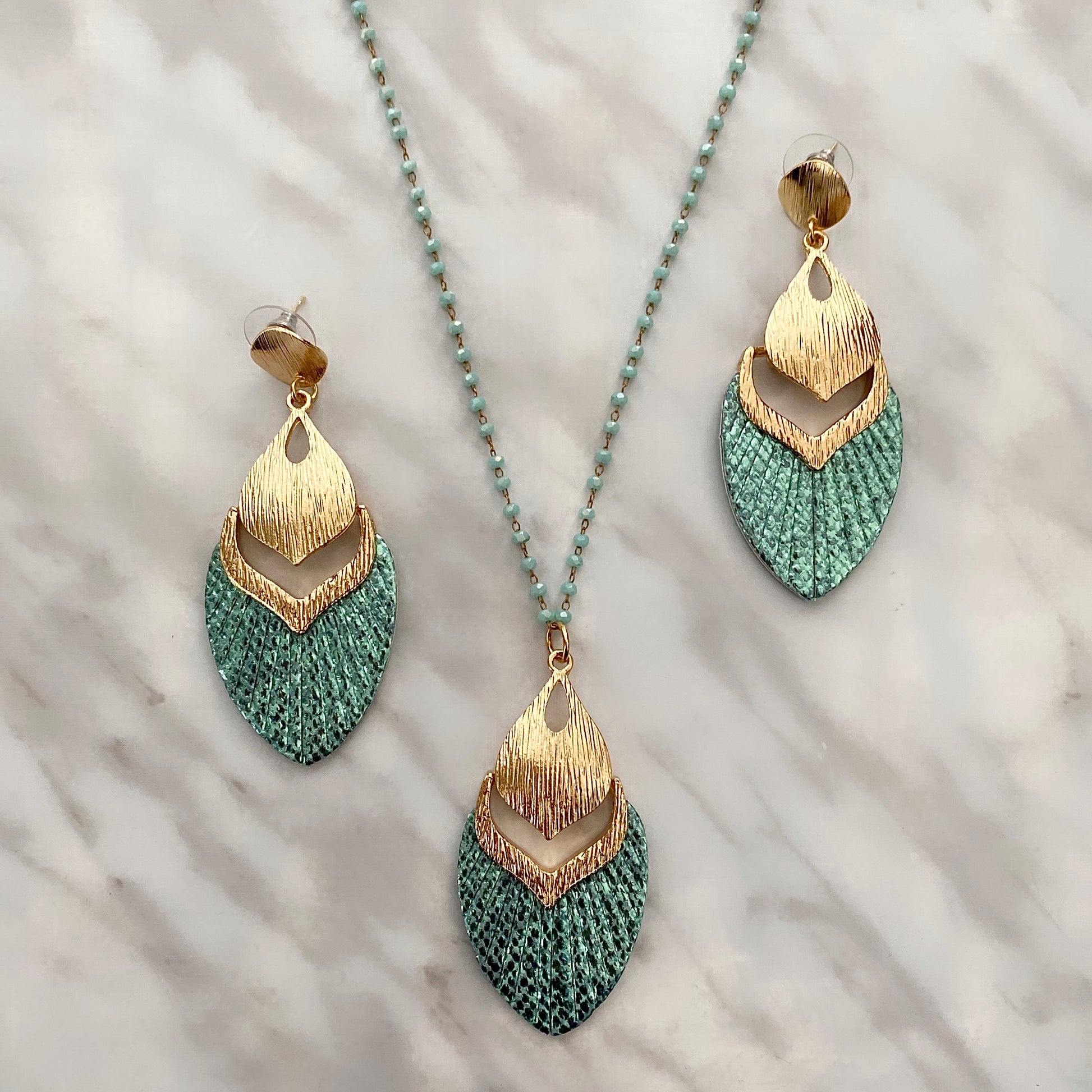 Magnifique ensemble de boucles d'oreilles et de collier qui complétera votre look estival ! Obtenez l'ensemble et économisez ! Disponible séparément également.