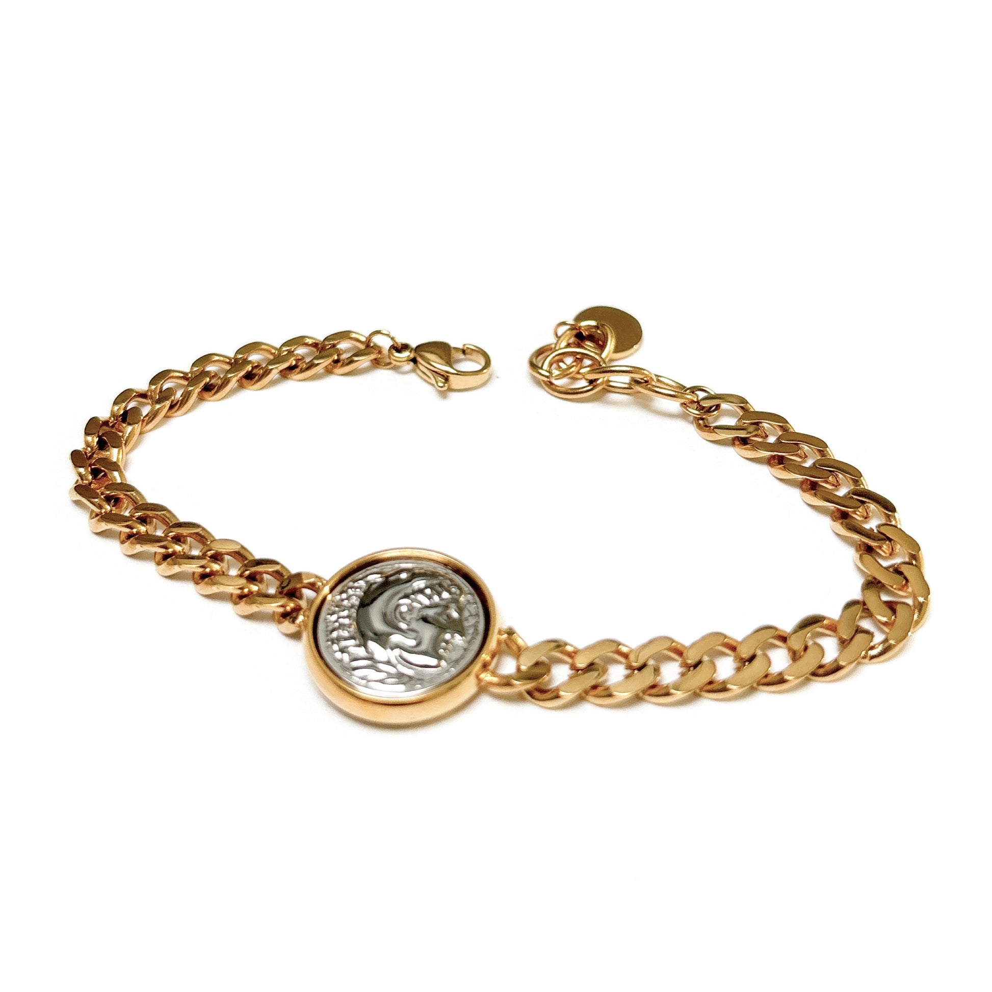 Rehaussez votre style avec nos BRACELETS MILANO. Le bracelet multi-chaînes en acier inoxydable plaqué or et notre chaîne gourmette épaisse avec pièce bicolore évoquent une ambiance européenne chic. Faites sensation dans les rues de Milan avec ces bracelets élégants et stylés.