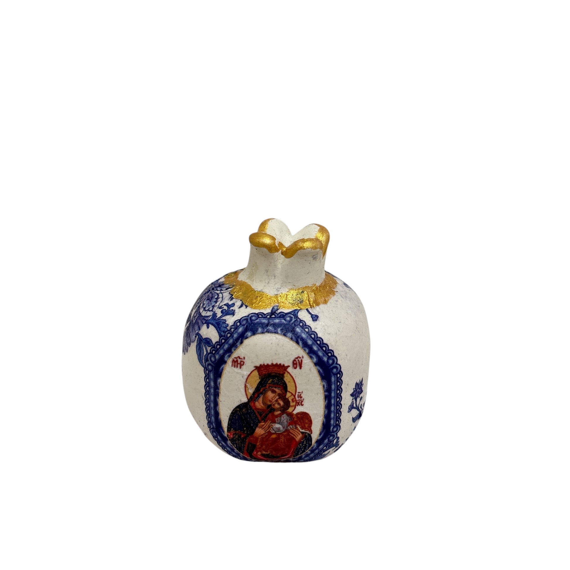 Invitez la prospérité dans votre foyer avec ces charmantes mini-grenades en porcelaine. Chaque pièce, façonnée à la main, célèbre la tradition et le symbolisme grecs et se décline en trois modèles distincts : l’un orné d’yeux (mati), un autre aux douces nuances de bleu avec les inscriptions sacrées ICXC NIKA, et un troisième rendant hommage à la Panagia (Vierge Marie). Parfaites comme porte-bonheur pour l’année à venir ou comme cadeau de pendaison de crémaillère attentionné, elles apporteront beauté et bénédictions à votre intérieur. Assez petites pour être exposées partout, assez précieuses pour être chéries à jamais.