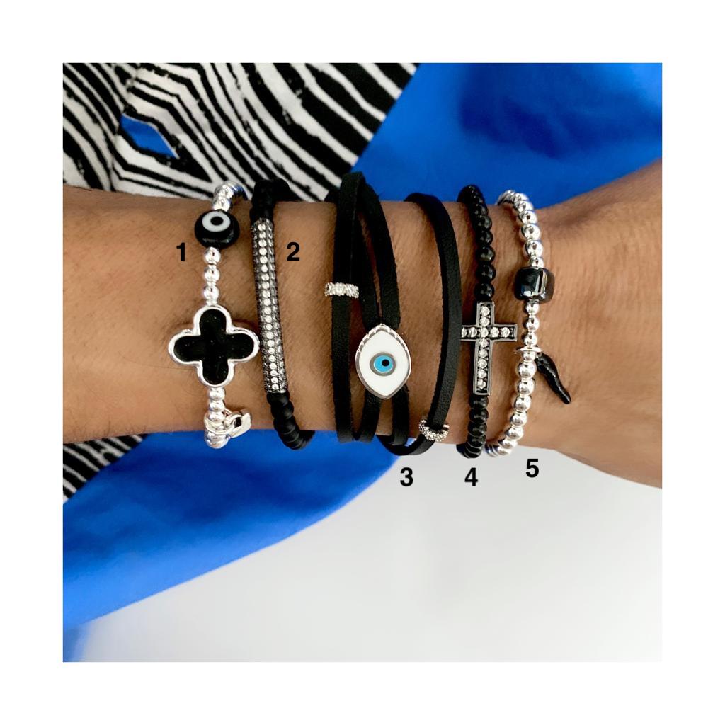 #1 Hématite plaqué argent avec oeil et croix (extensible)