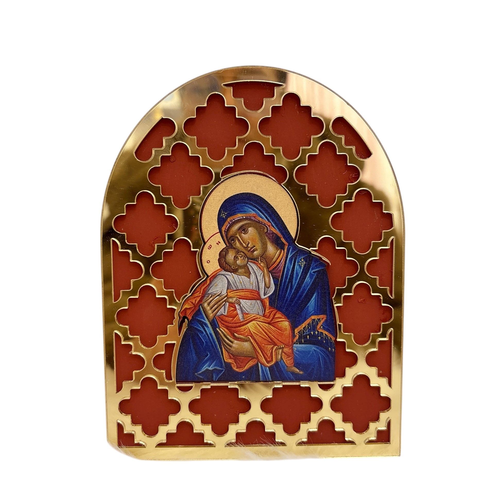 Sublimez votre intérieur avec cette magnifique icône en bois, ornée d'une représentation de la Panagia. Confectionnée en bois rouge et rehaussée d'un élégant motif en plexiglas doré, cette pièce allie harmonieusement spiritualité et esthétique contemporaine. Sa robustesse la rend idéale pour être exposée sur des étagères, une commode ou un autel, tandis que son charme intemporel en fait un cadeau exceptionnel pour les amoureux de la tradition orthodoxe. Un objet précieux pour tout foyer où la foi et l'art se conjuguent.