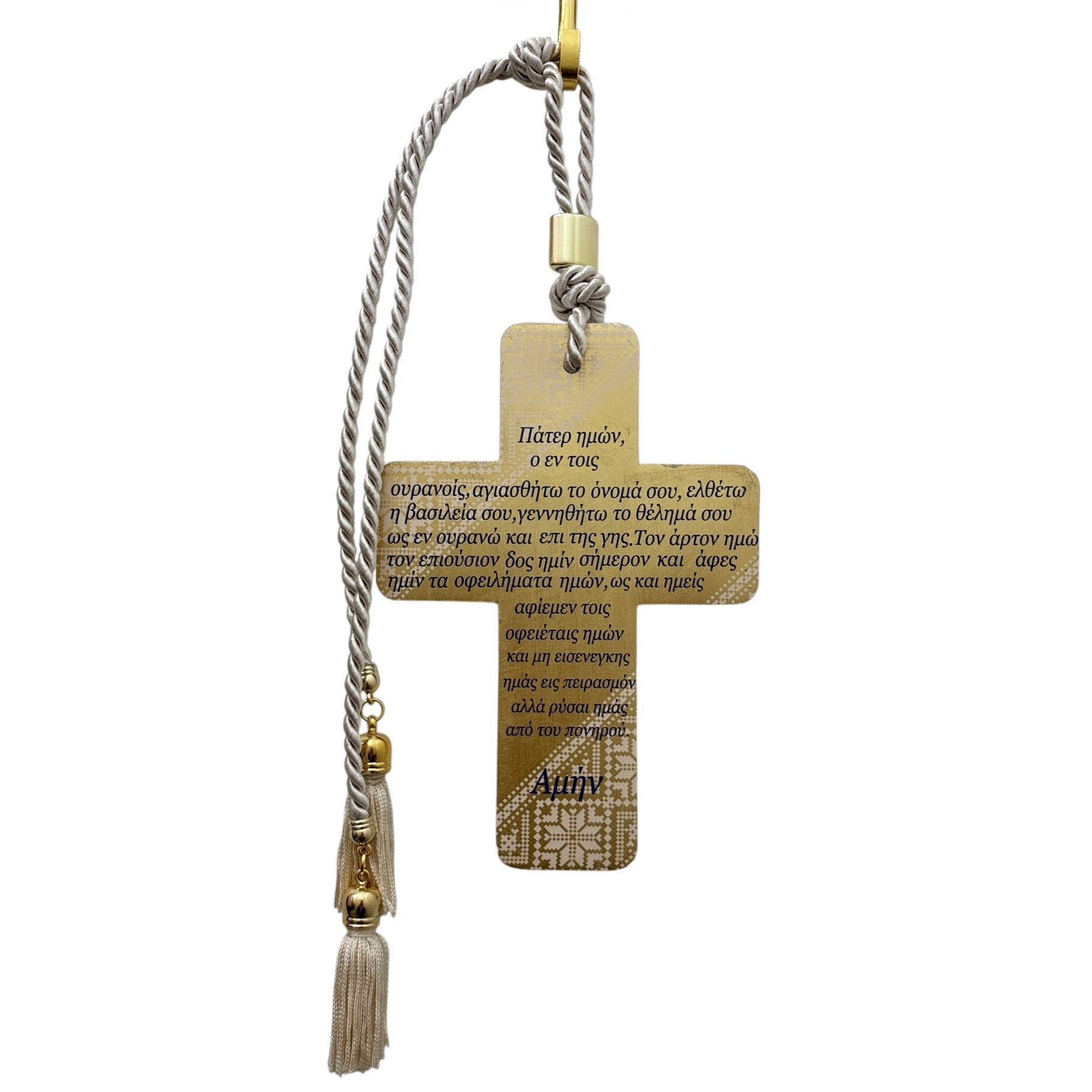 Transformez votre espace avec cette exquise croix en porcelaine, ornée d'élégants détails dorés et de la prière du Pater Imon. Suspendue par un luxueux cordon à pompons décoratifs, elle s'intègre harmonieusement à tous les murs de votre maison. Disponible en deux tailles, petite et grande, elle s'accordera parfaitement à votre décoration. Cette pièce raffinée allie spiritualité et esthétique, créant un point focal propice à la contemplation et apportant une beauté intemporelle à votre havre de paix.