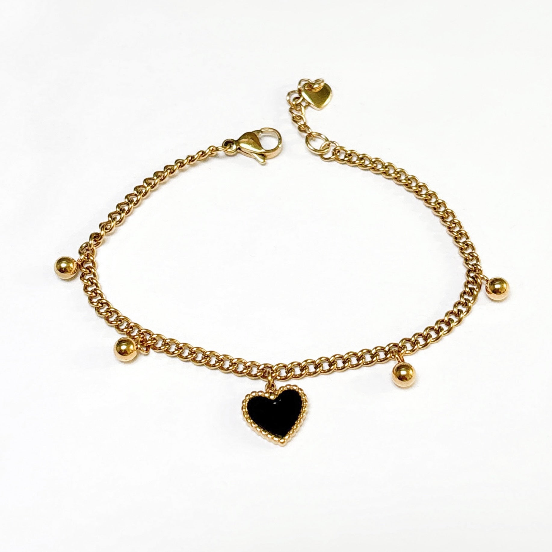 3. Bracelet à breloques avec coeur noir (6,5" avec extension de 1")