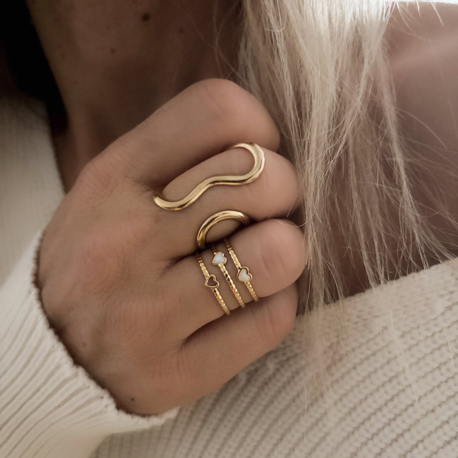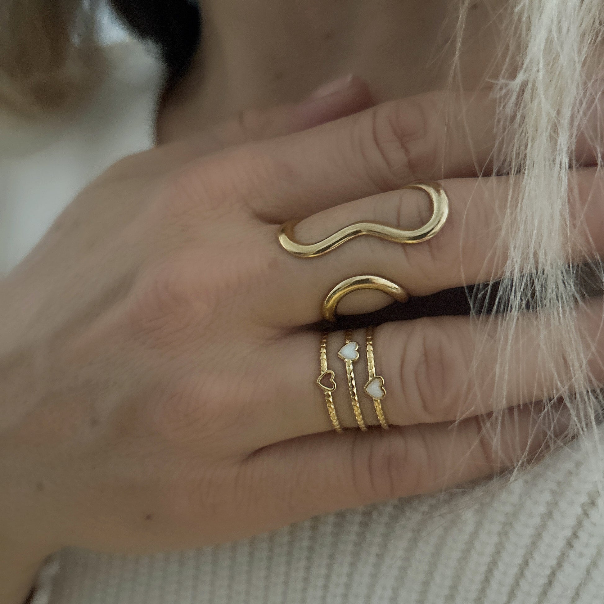 Découvrez le summum du luxe avec nos BAGUES EN OR PERSIA ! Notre bague manchette et notre bague triple couche avec cœurs respirent l'élégance et le style. Rehaussez n'importe quelle tenue et faites une déclaration audacieuse avec ces superbes pièces. Un incontournable pour toute personne à la pointe de la mode.