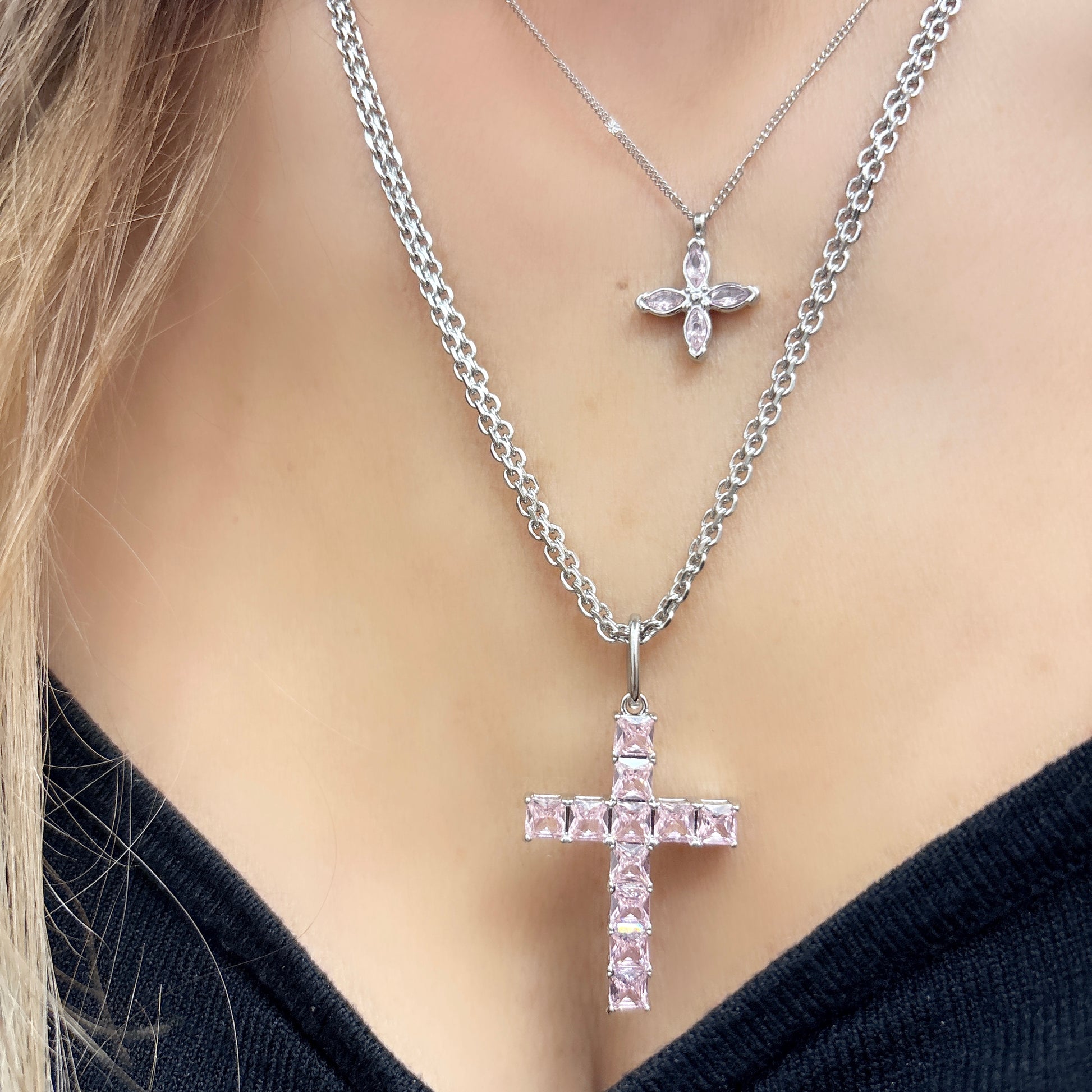 # 1 Petite Croix (rose-transparent) - réglable jusqu'à 18,5"