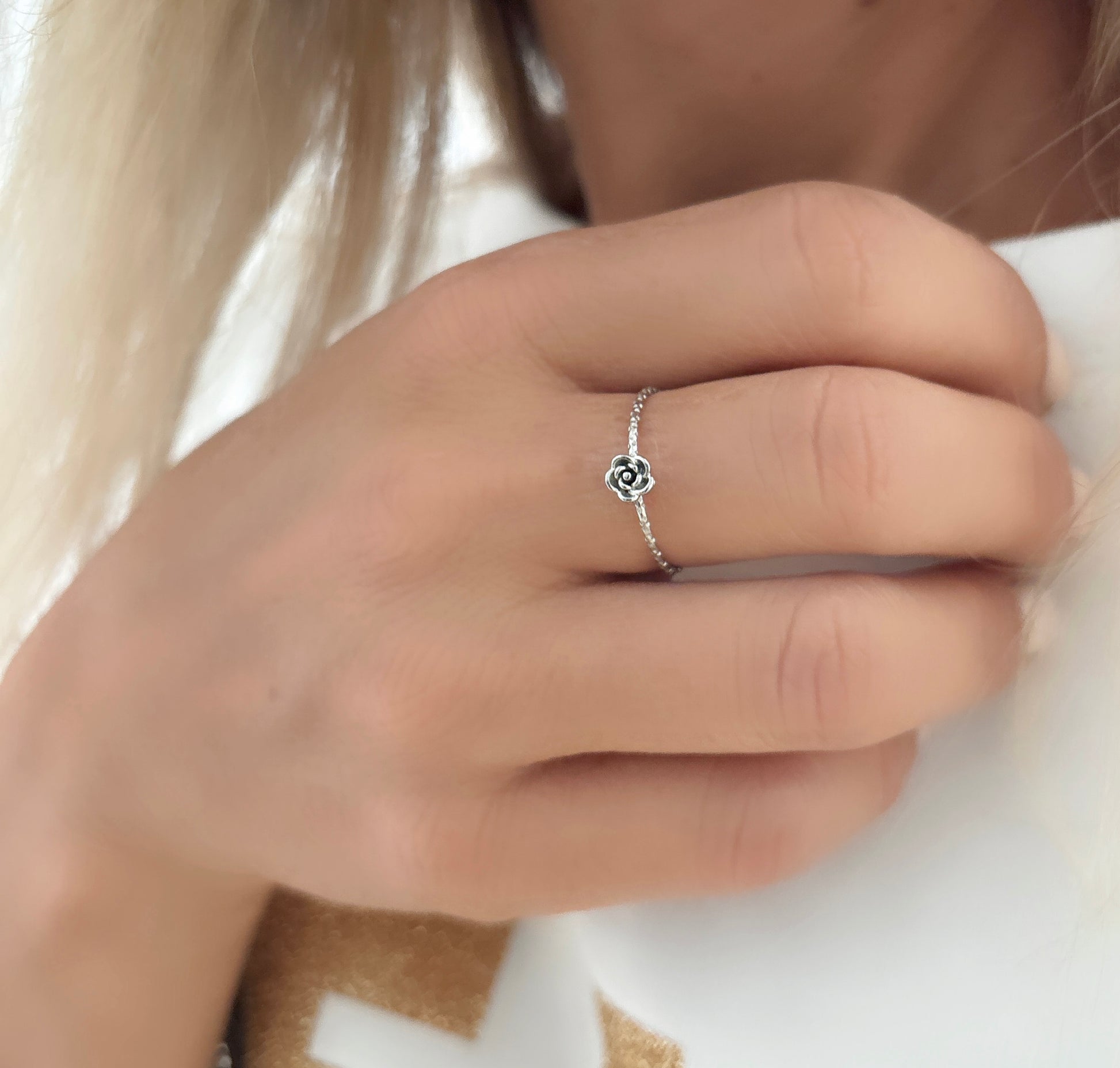 Rehaussez votre look avec la BAGUE ROSA. Cette bague en acier inoxydable présente un design délicat et délicat, avec une bande torsadée et une petite rose. Sa simplicité, son minimalisme et son élégance en font le complément parfait de toute tenue. Fabriquée de main de maître, elle deviendra sûrement un incontournable de votre collection de bijoux.