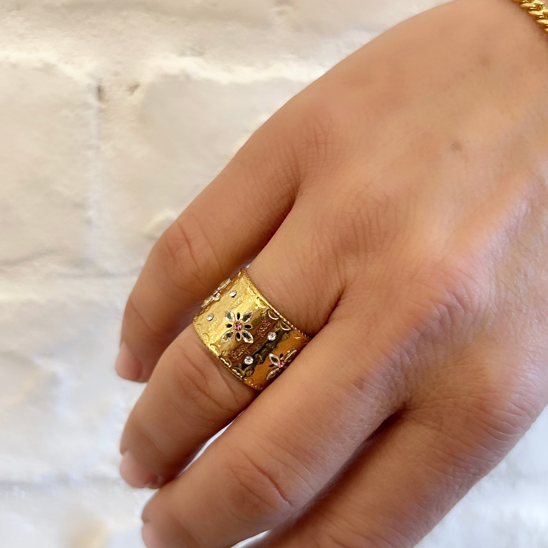 # 3 Bague en acier inoxydable avec cristaux (réglable)