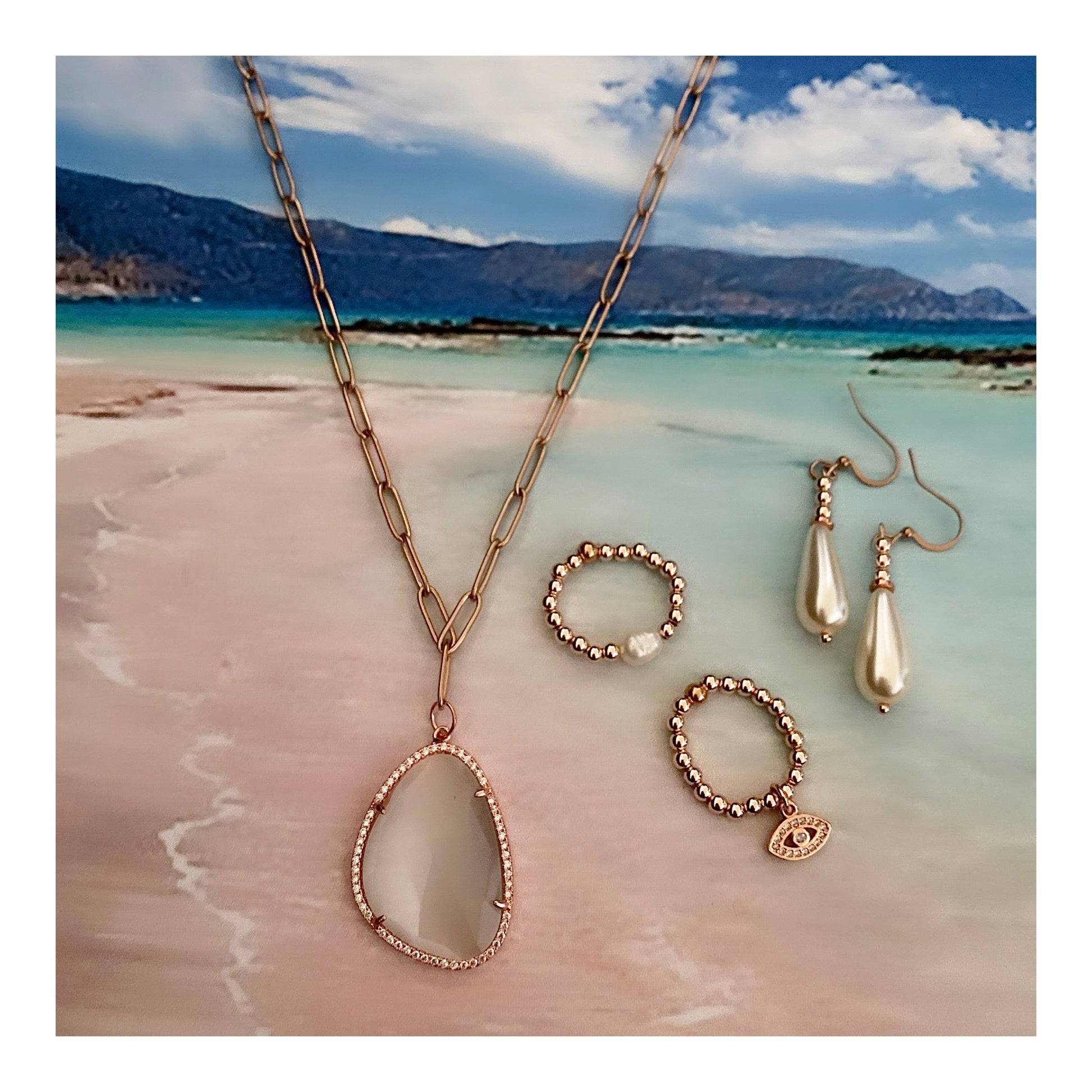 COLLIERS, BOUCLES D'OREILLES ET BAGUES PERLES DU BORD DE MER