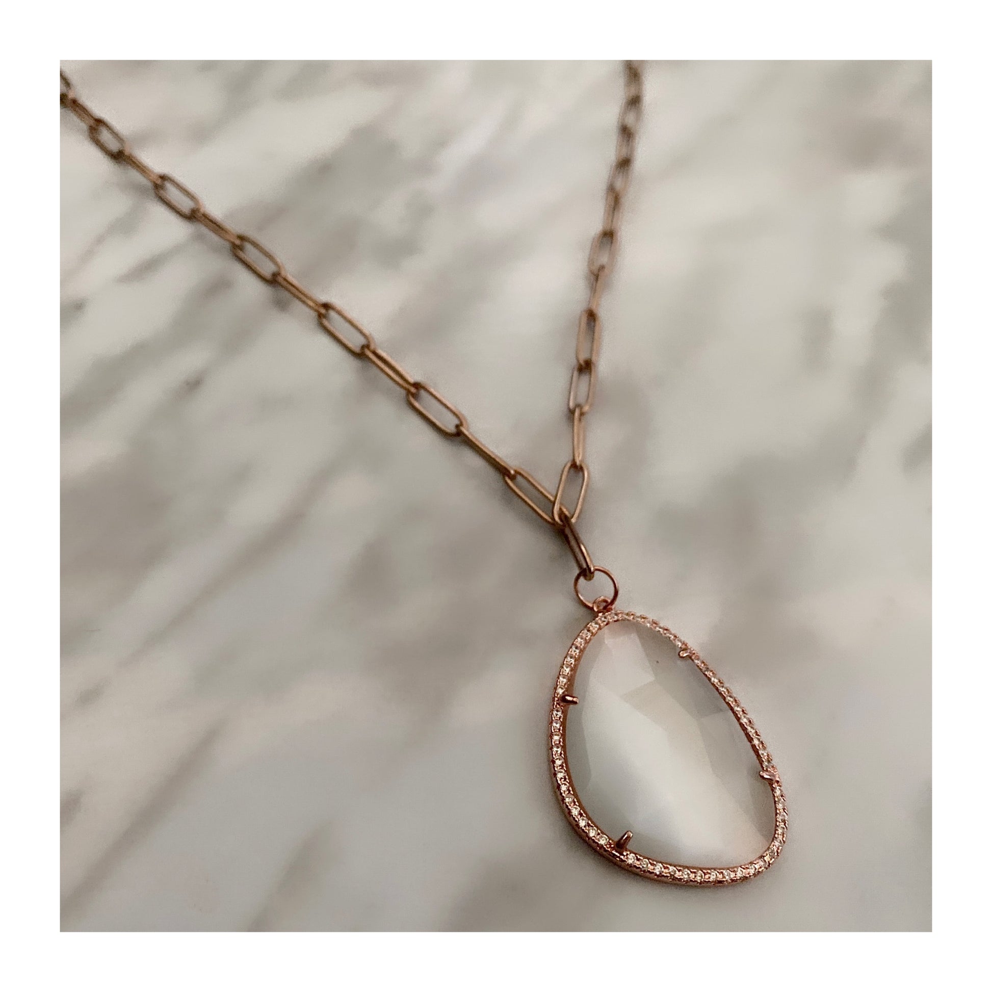#1 (collier) Chaîne trombone plaquée or rose avec pendentif asymétrique cz et oeil de chat mesurant 18 pouces,