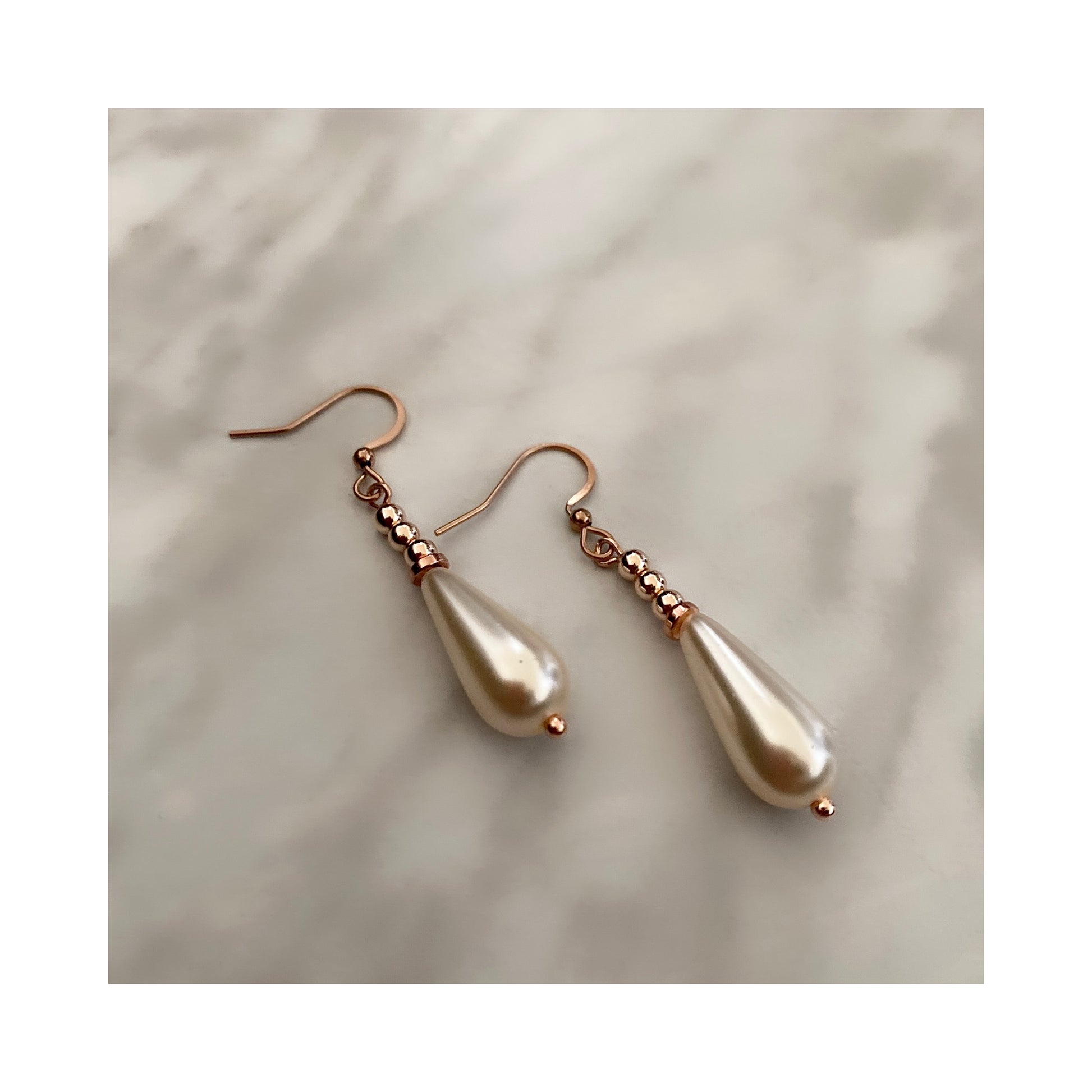 #4 (boucles d'oreilles) Plaqué or rose et fausse perle en forme de larme