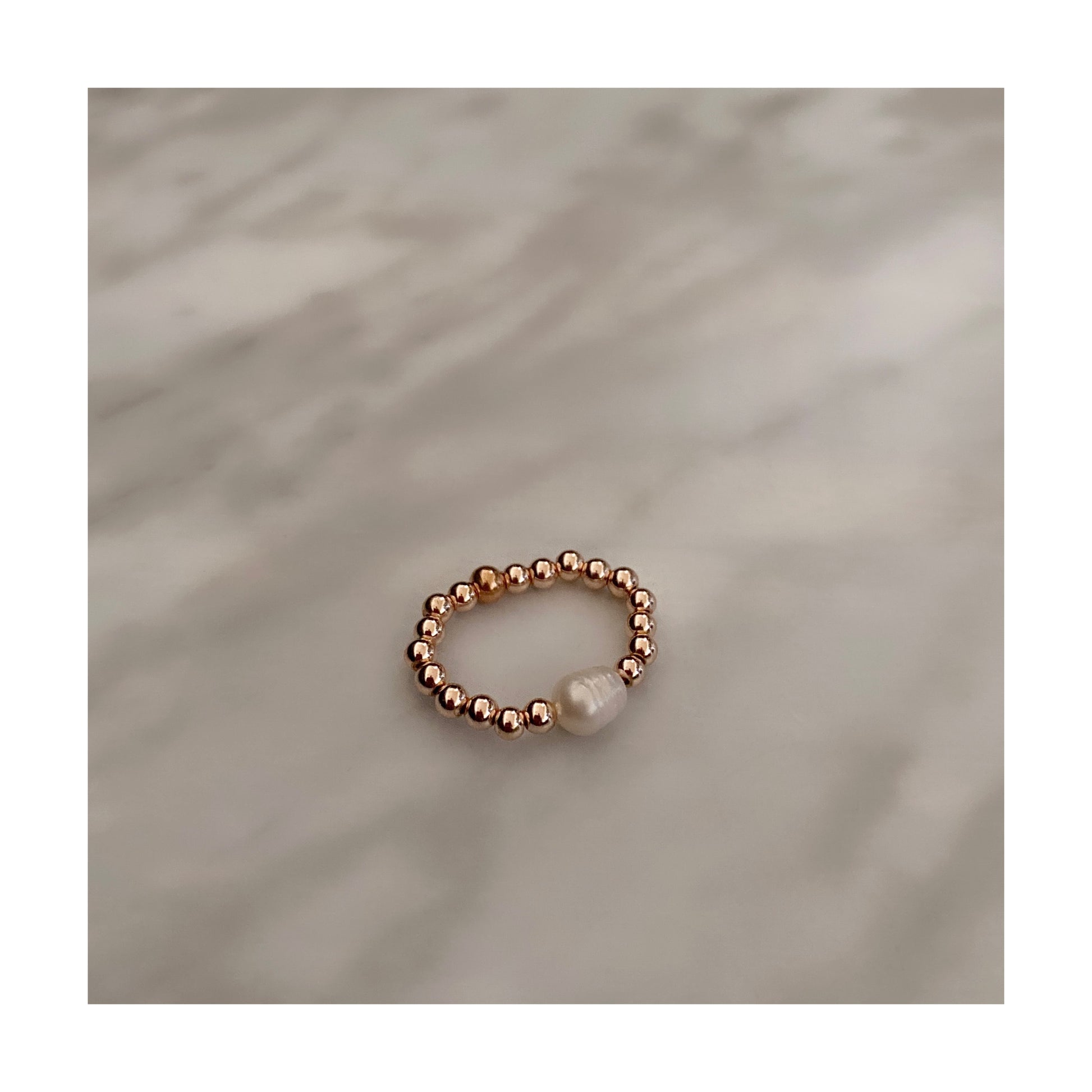 #2 (bague) Hématite plaqué or rose 3mm avec perle d'eau douce (stretch)