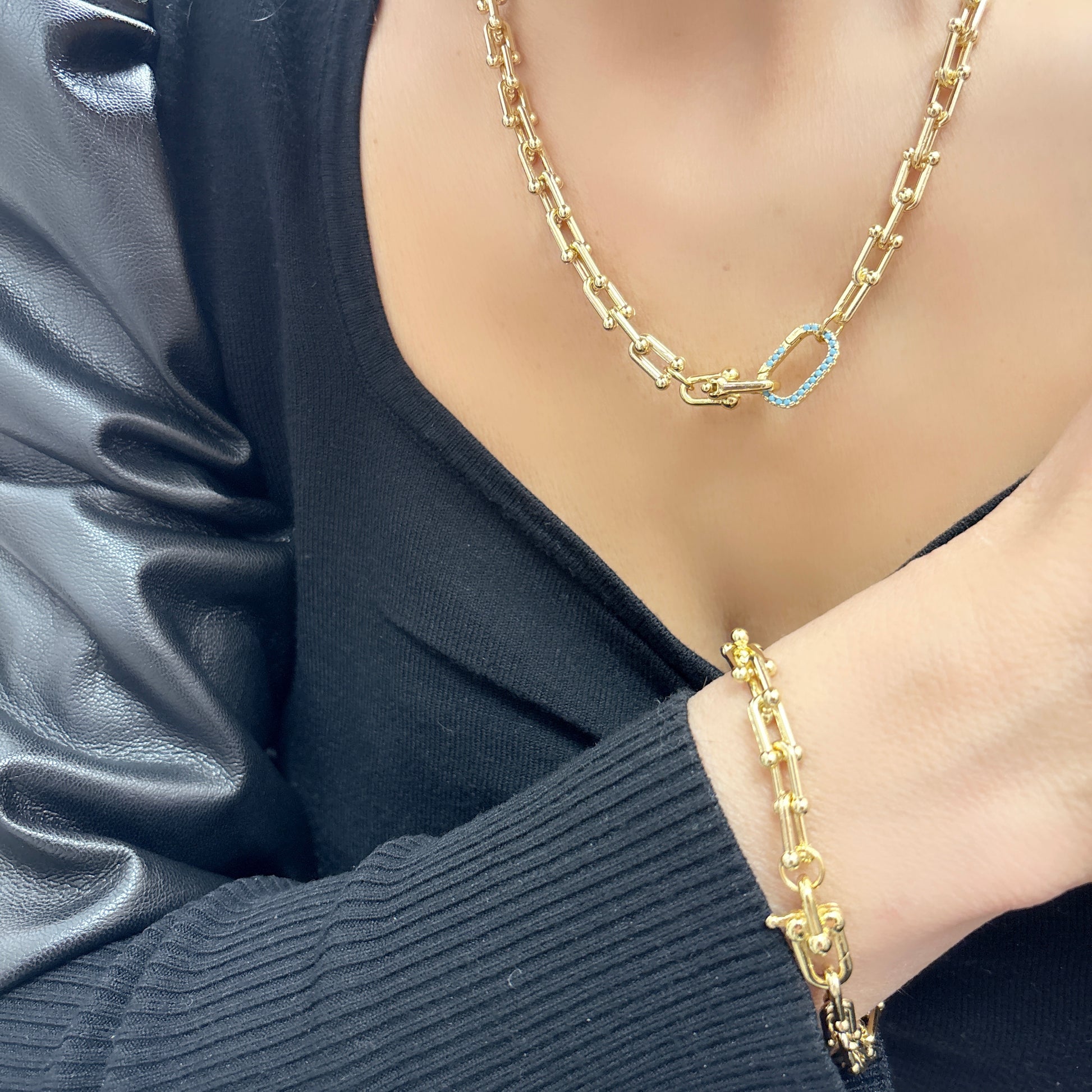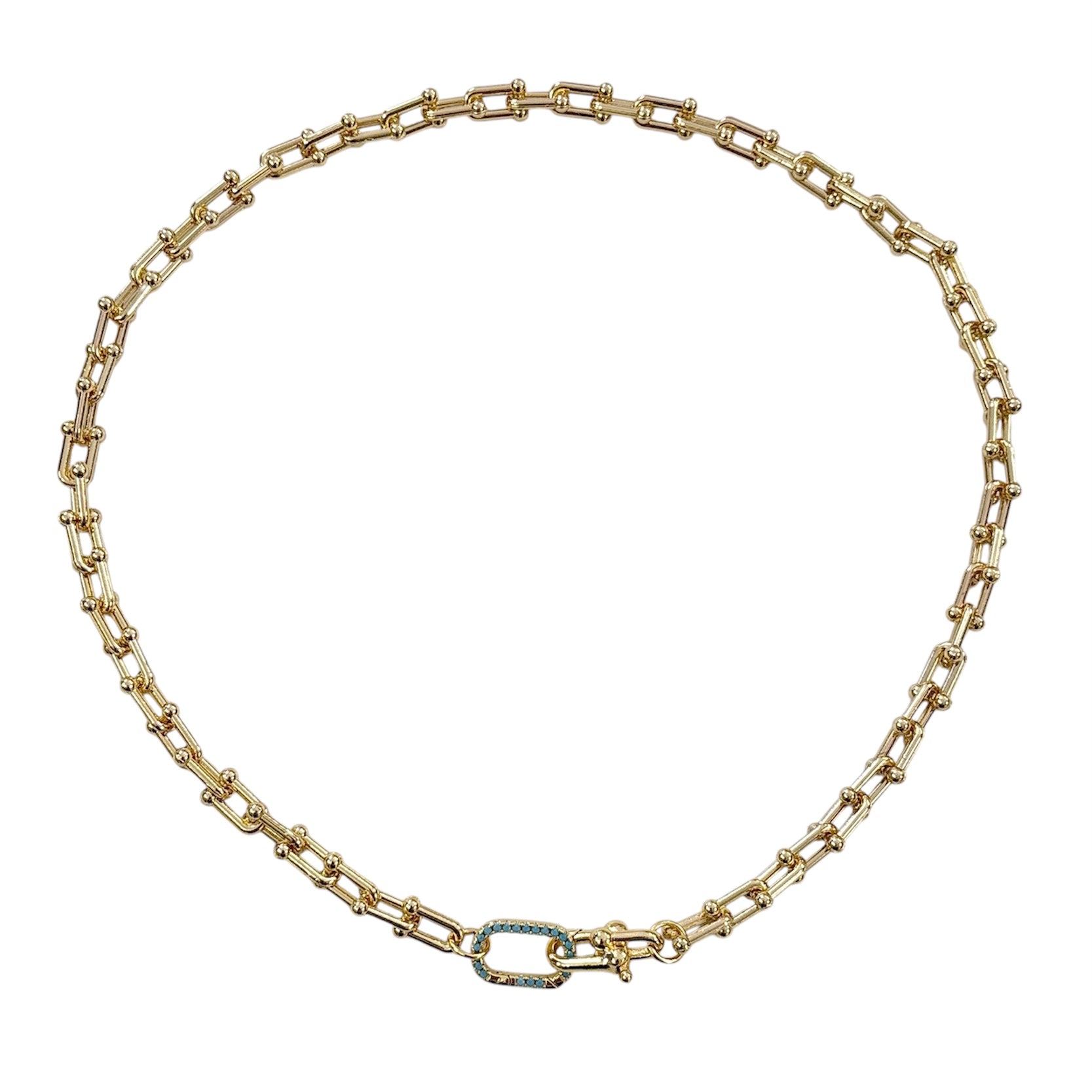 Sublimez votre style avec notre PETIT COLLIER TIFF ! Cette magnifique chaîne en laiton plaqué or est ornée d'oxydes de zirconium turquoise scintillants. Les fermoirs à ressort et mousqueton ajoutent une touche de luxe et de praticité. Sublimez votre look avec ce superbe bijou !