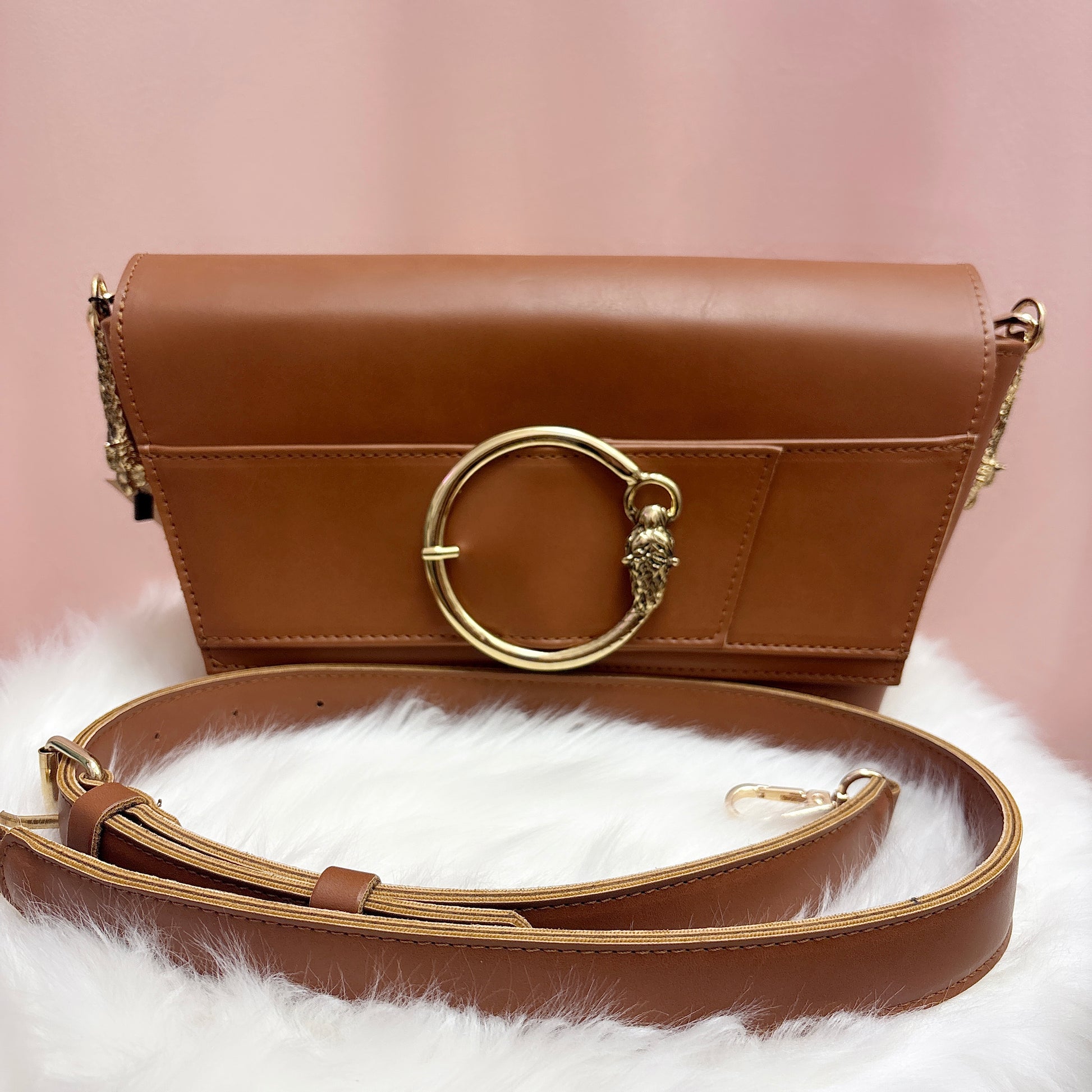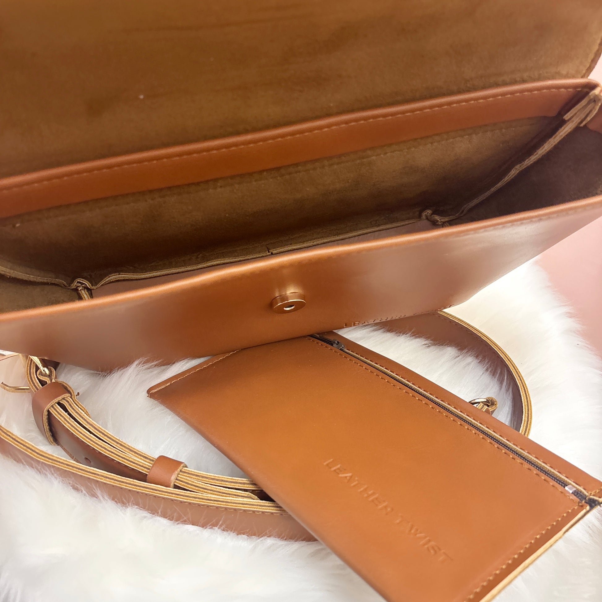 Le sac en cuir SYLVIE présente un rabat sophistiqué et une boucle magnétique. Il peut être porté avec une bandoulière courte ou longue en cuir. Ce luxueux sac est également accompagné d'un portefeuille en cuir assorti.