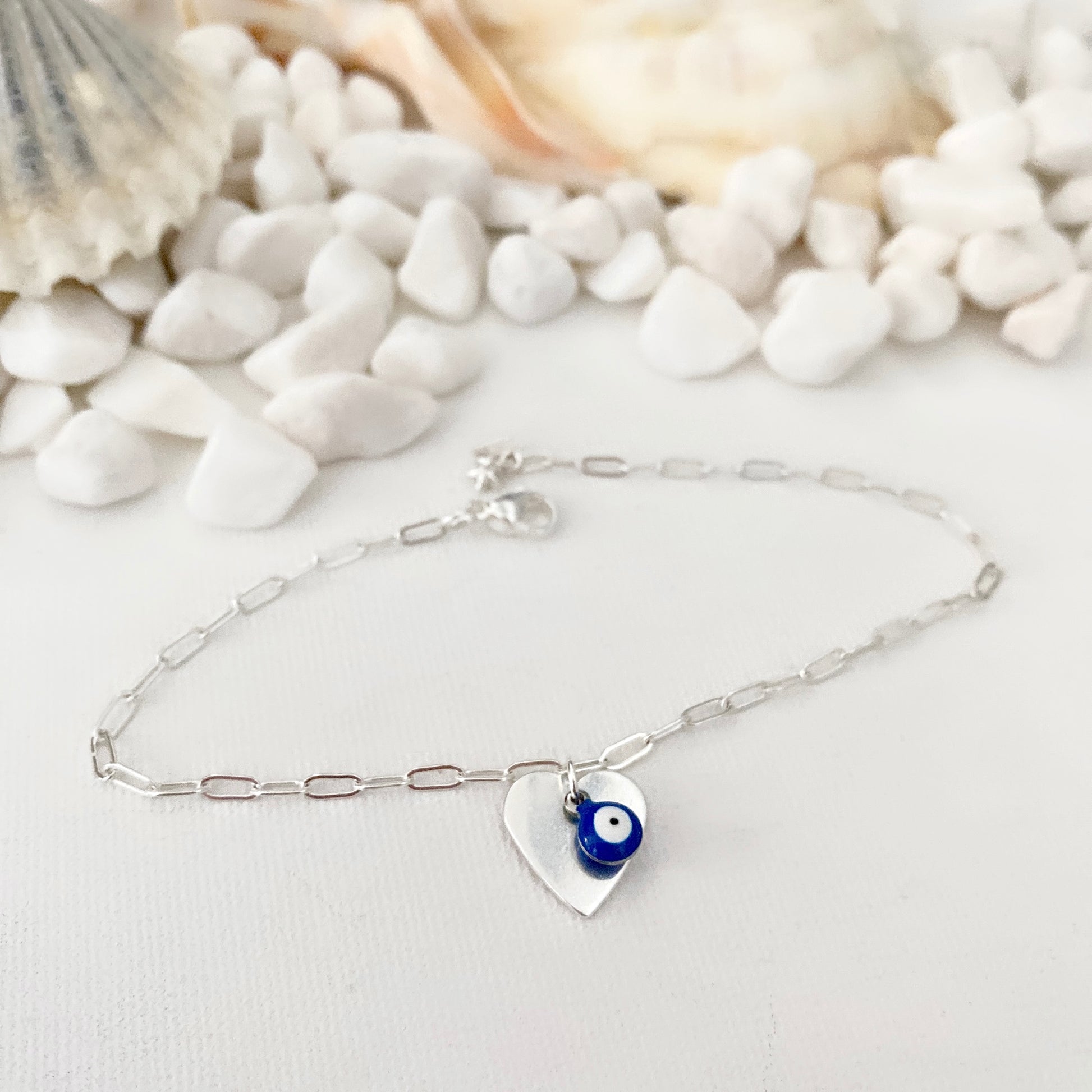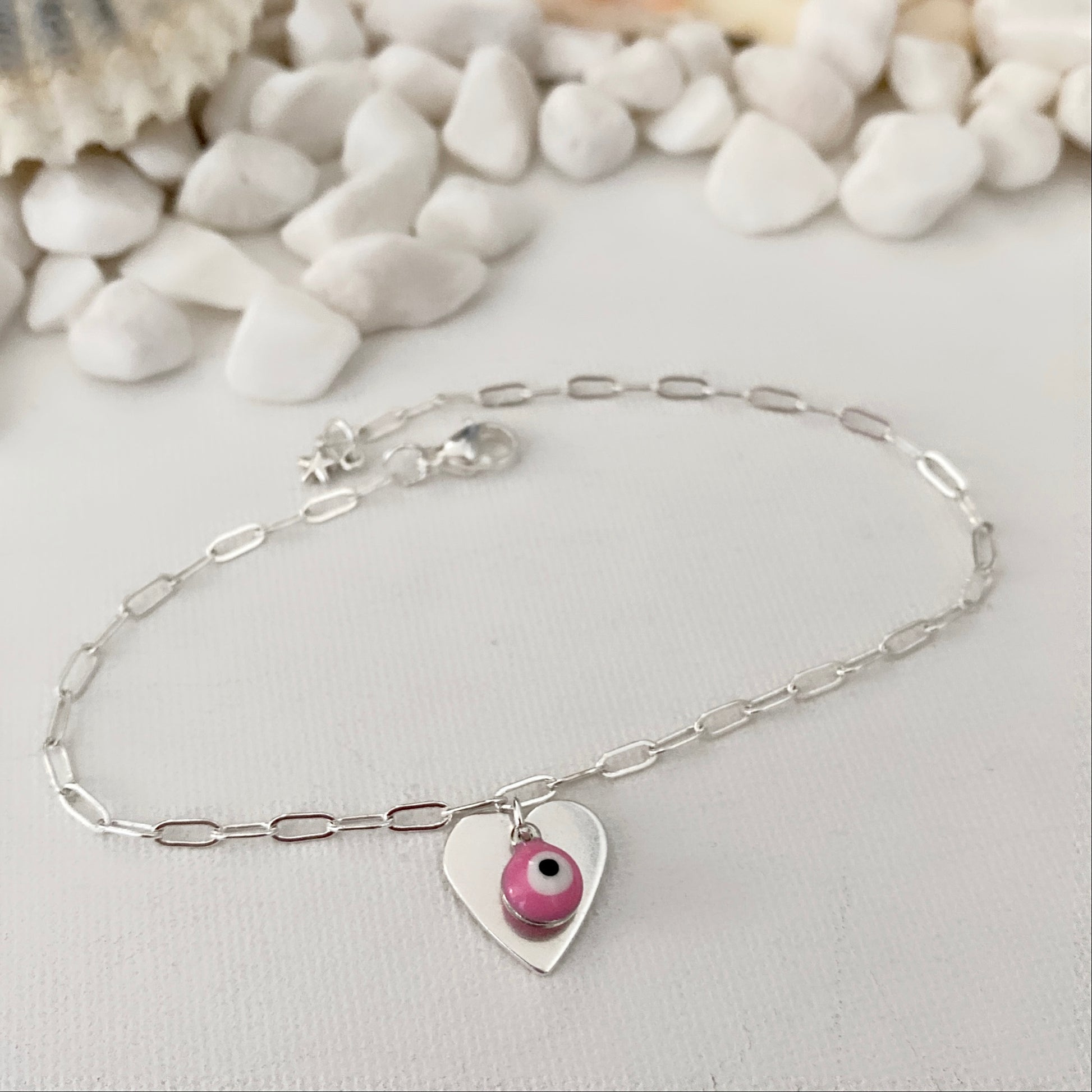 Bracelets de cheville plaqués argent avec yeux et cœurs en chaîne en acier inoxydable