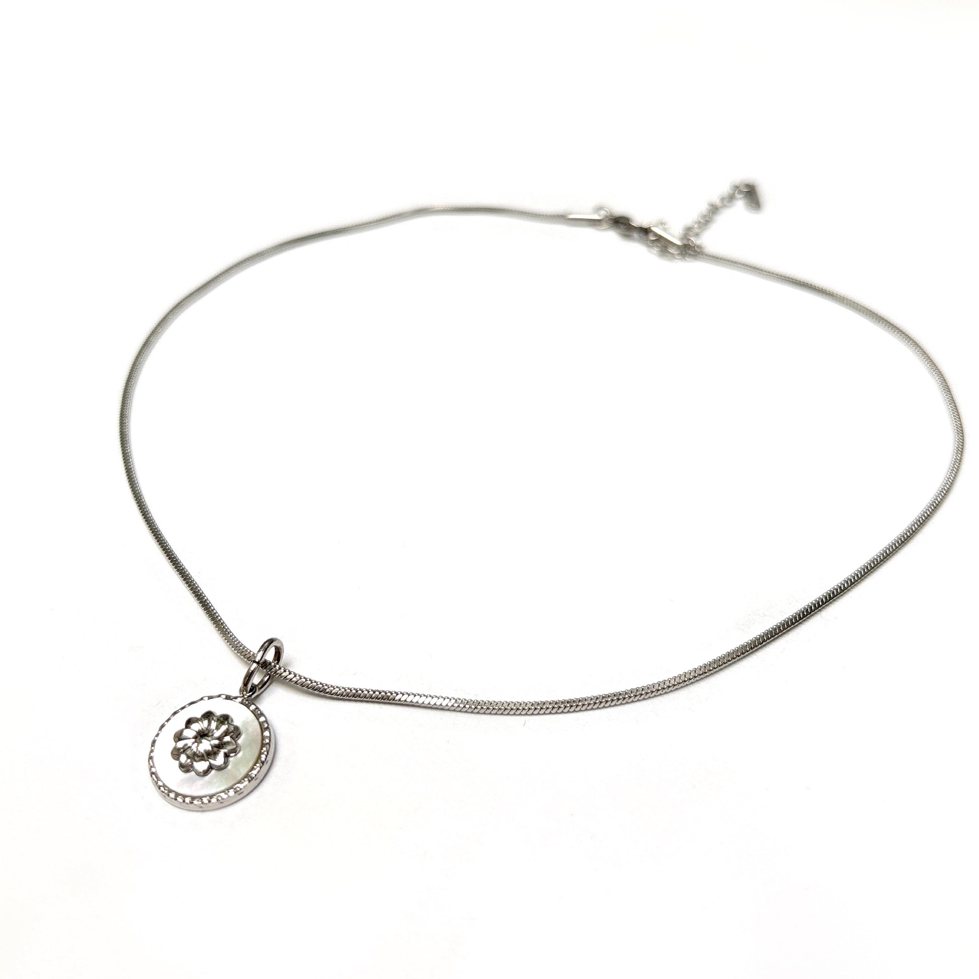 1. Coquillage rond avec pendentif en forme de fleur - (16" avec extension de 2")