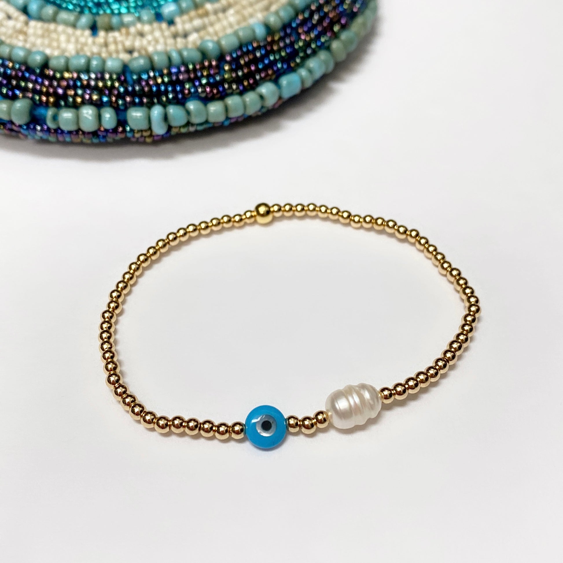 #5 Hematite gold plated beads 3mm with fresh water pearl and eye (stretch),