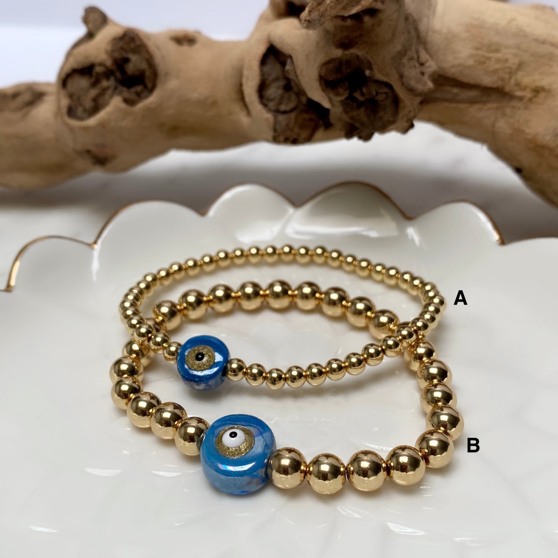 #2B Hematite gold plated with ceramic eye (option B 6mm) (stretch)