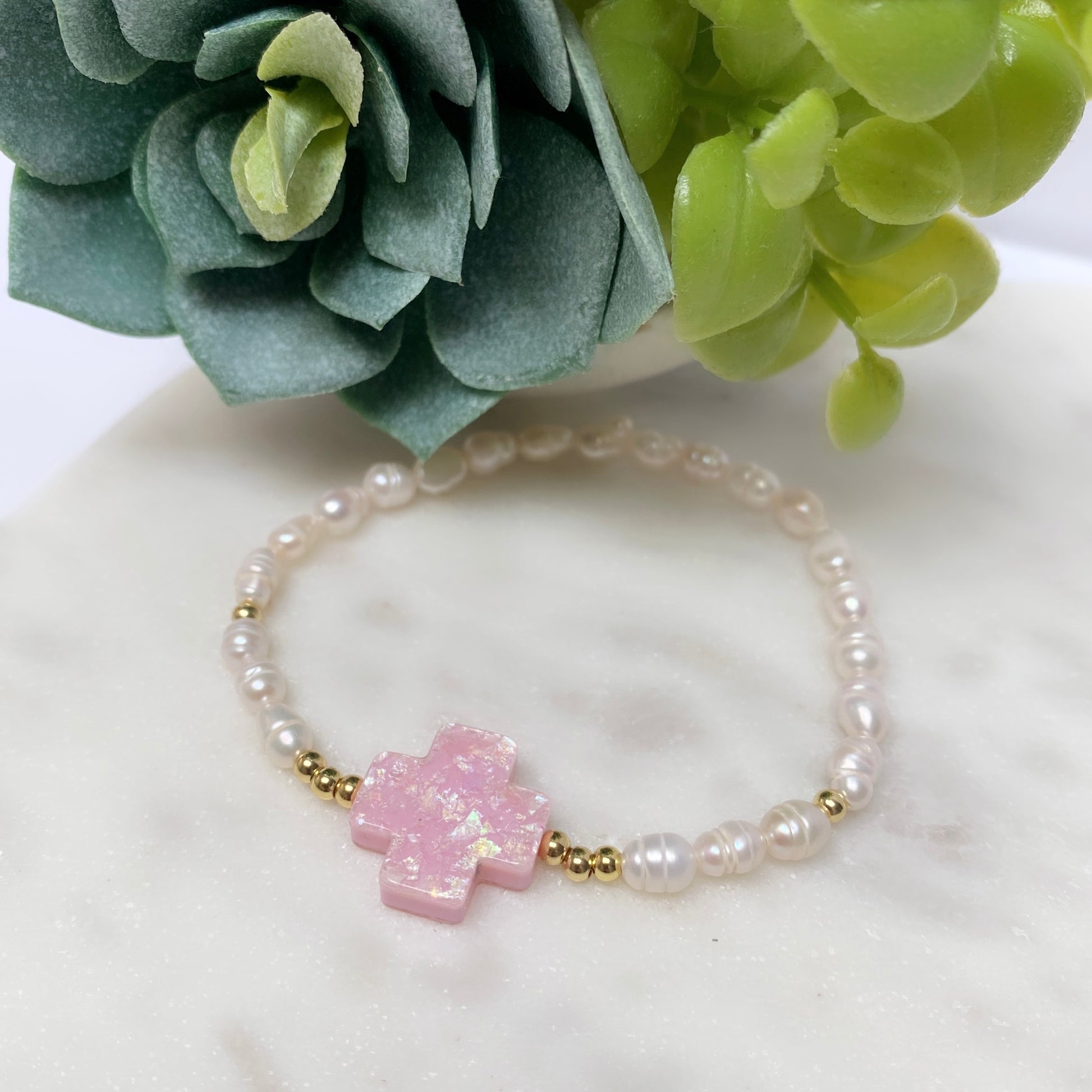 #3 Fresh water pearl with cross (stretch)