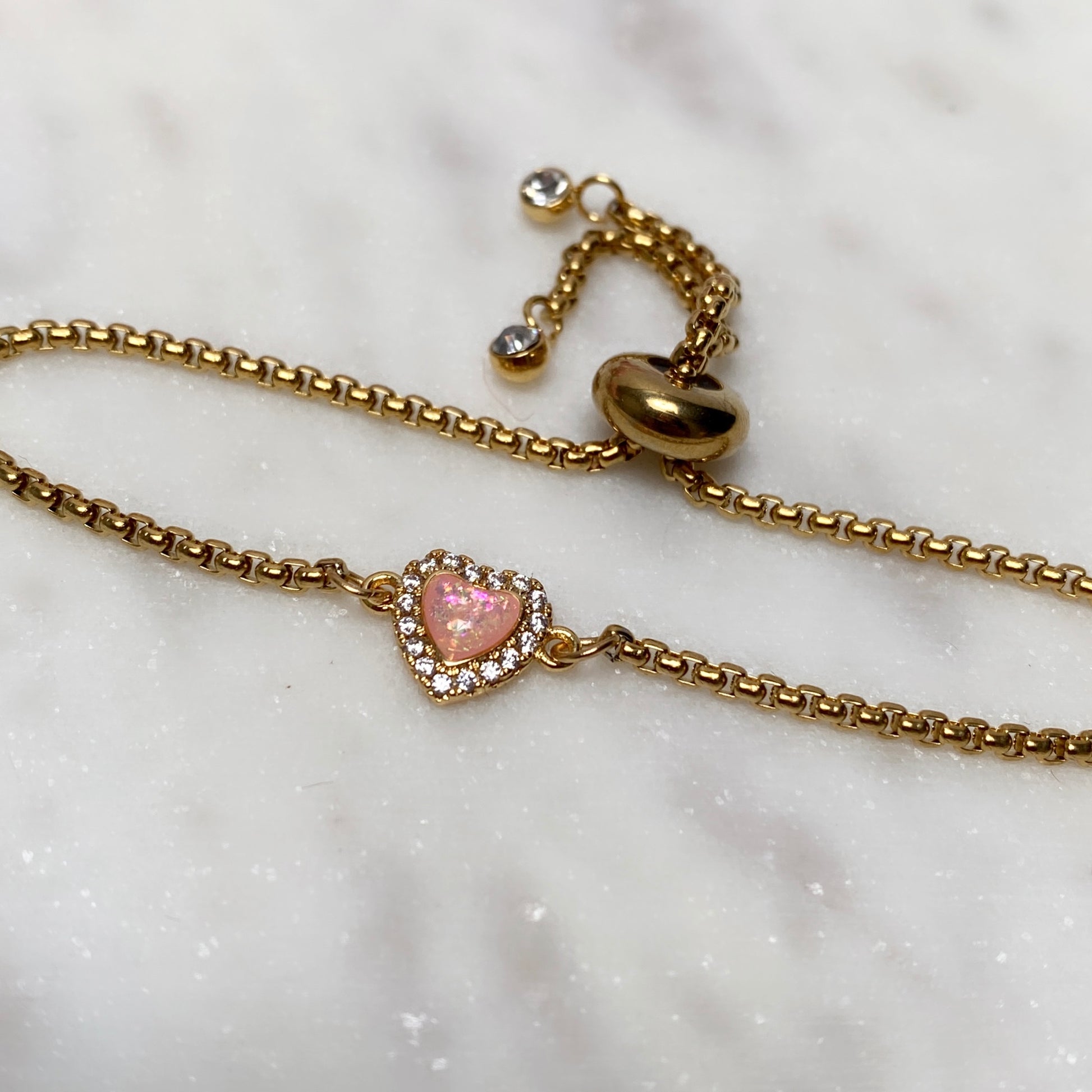 #4 Stainless steel gold plated chain with cz heart (adjustable)