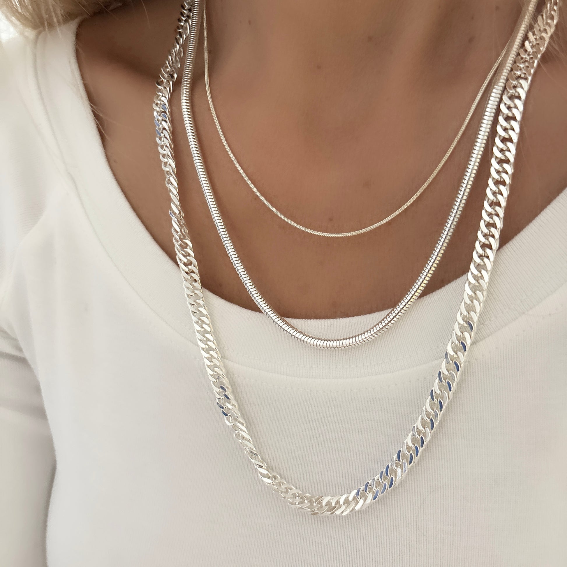 Indulge in the opulence of our CHAIN REACTION NECKLACES. Crafted with 3 layered stainless steel chains and silver plating, these necklaces exude luxury and sophistication. Elevate any outfit with this exclusive piece that will make you stand out in a sea of ordinary accessories.