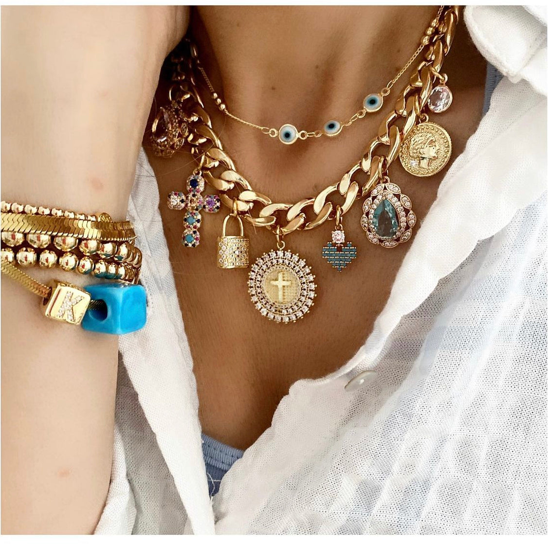#2 Stainless steel gold plated chunky cuban link chain measuring 16 inches with 8 charms listed below: