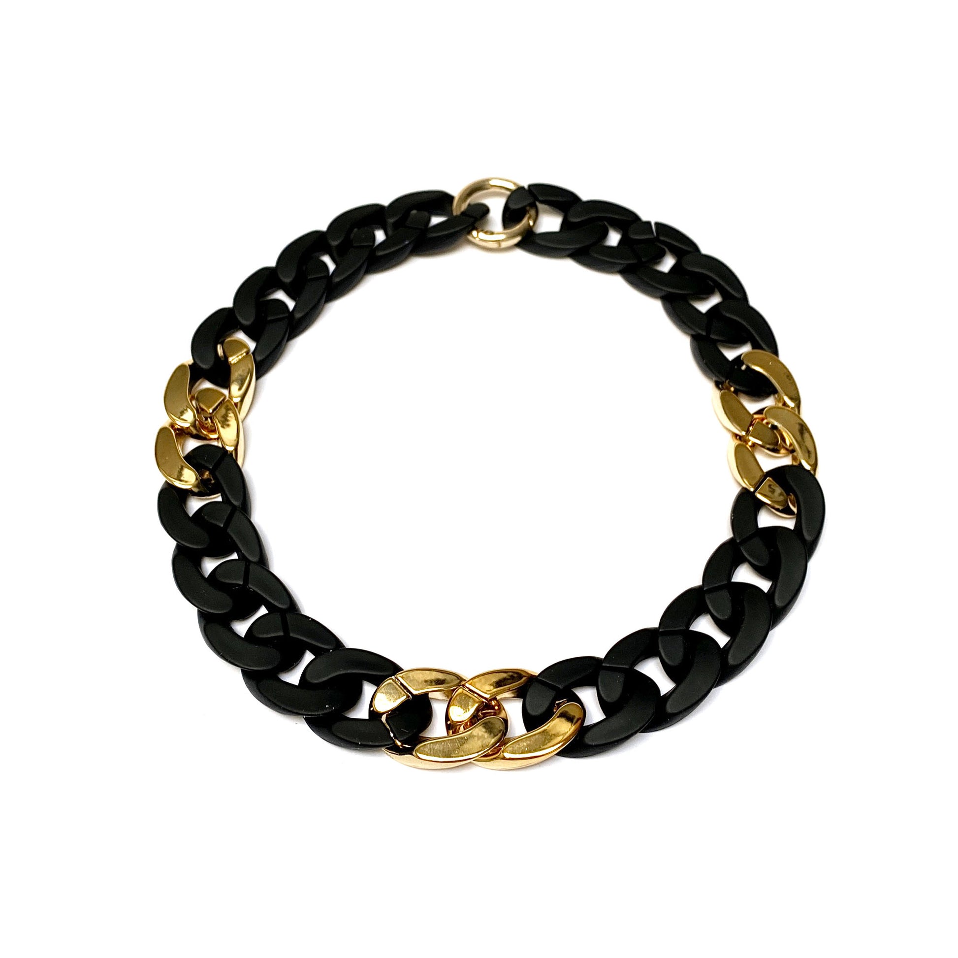 #3 Rubberized acrylic chunky but light necklace with a spring clasp closure measuring 17 inches