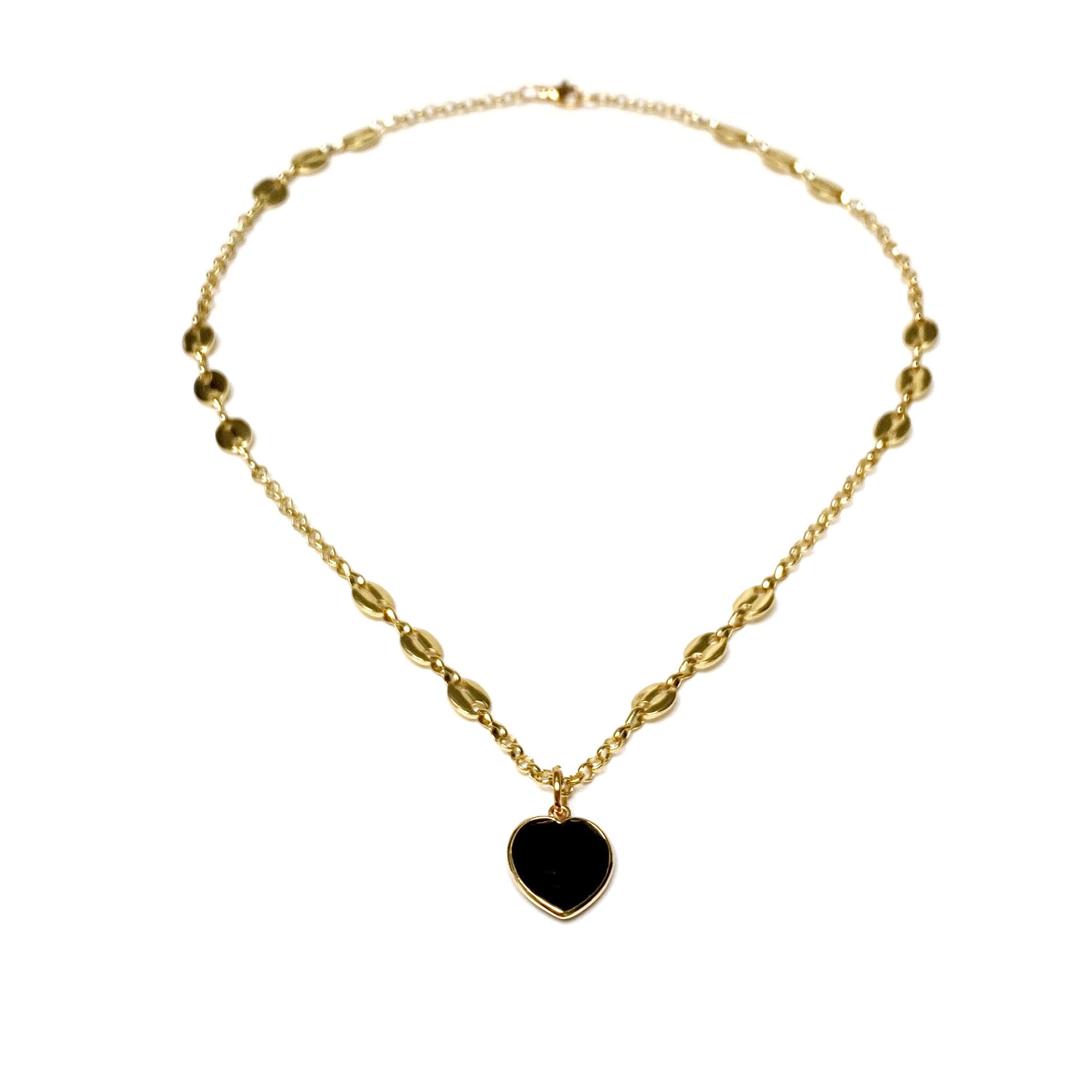 #1 Brass gold plated coffee bean chain with gold plated enamel heart pendant measuring 18 inches