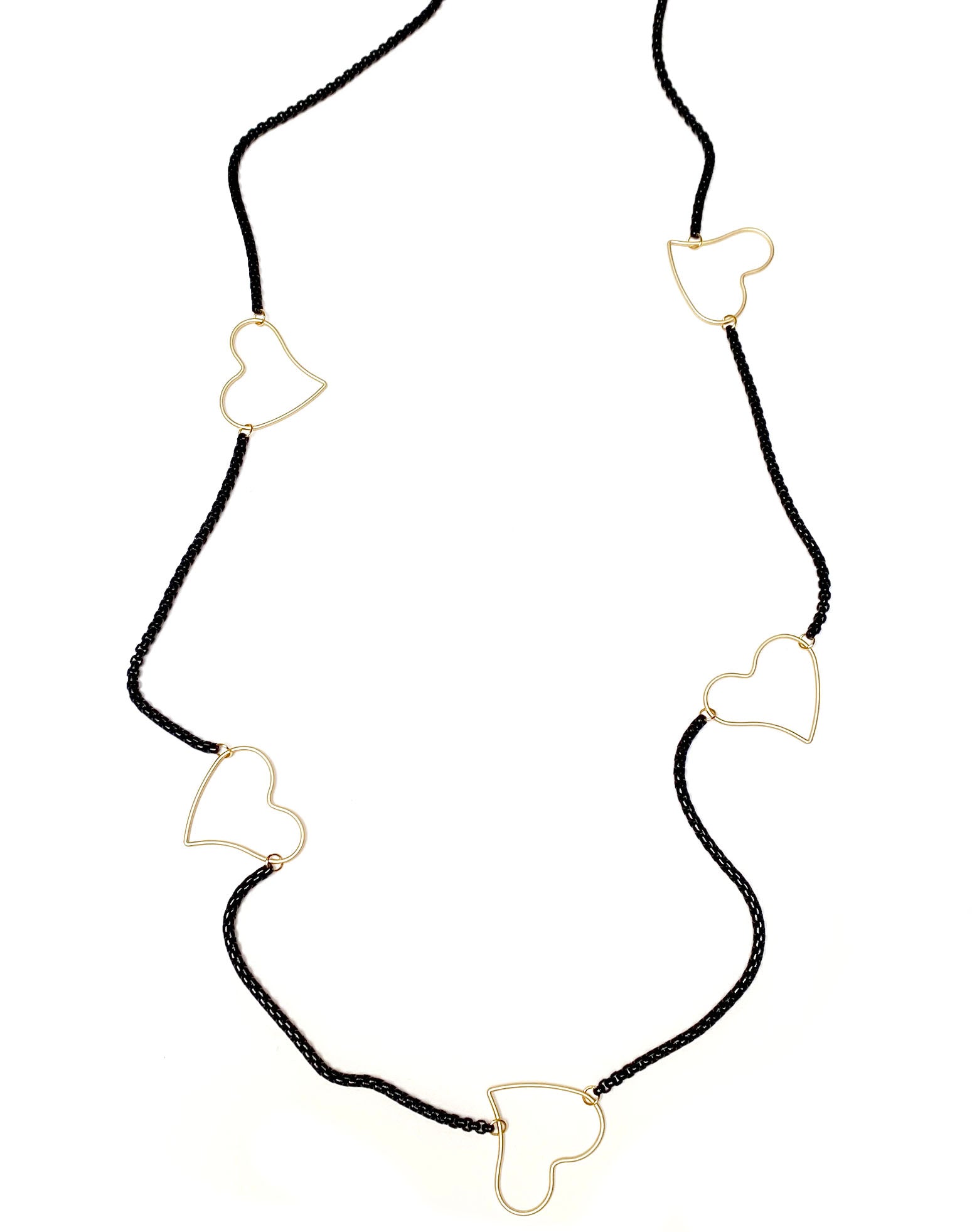 #3 Brass spray painted chain with gold plated hearts measuring 58 inches