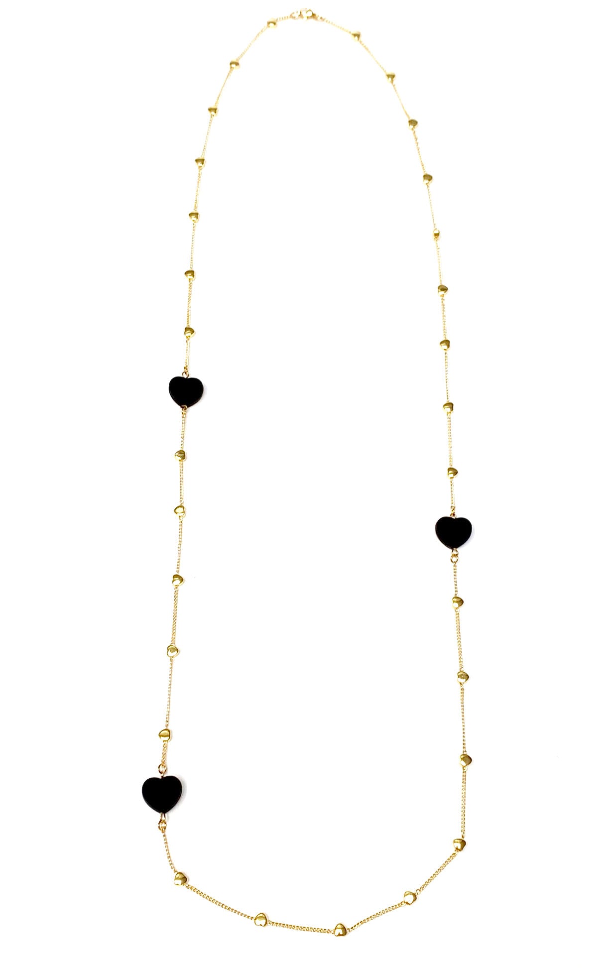 #3 Brass gold plated fancy chain with heart accents & matte acrylic hearts measuring 40 inches