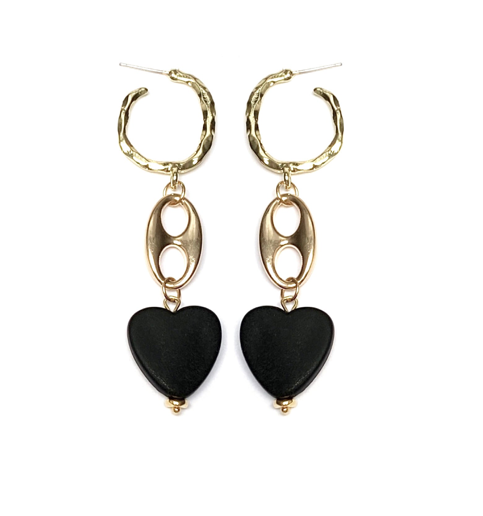 #3 Gold plated coffee bean link with matte acrylic heart (3 inch drop)