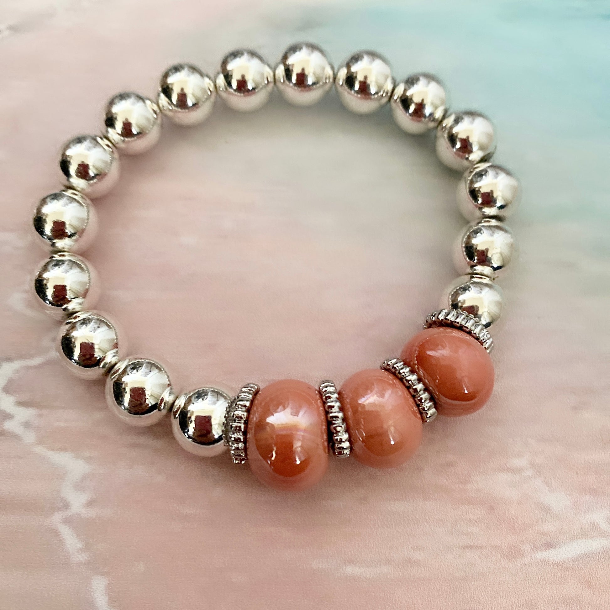 #4- Hematite silver plated beads 10mm with ceramic beads 14mm (stretch)
