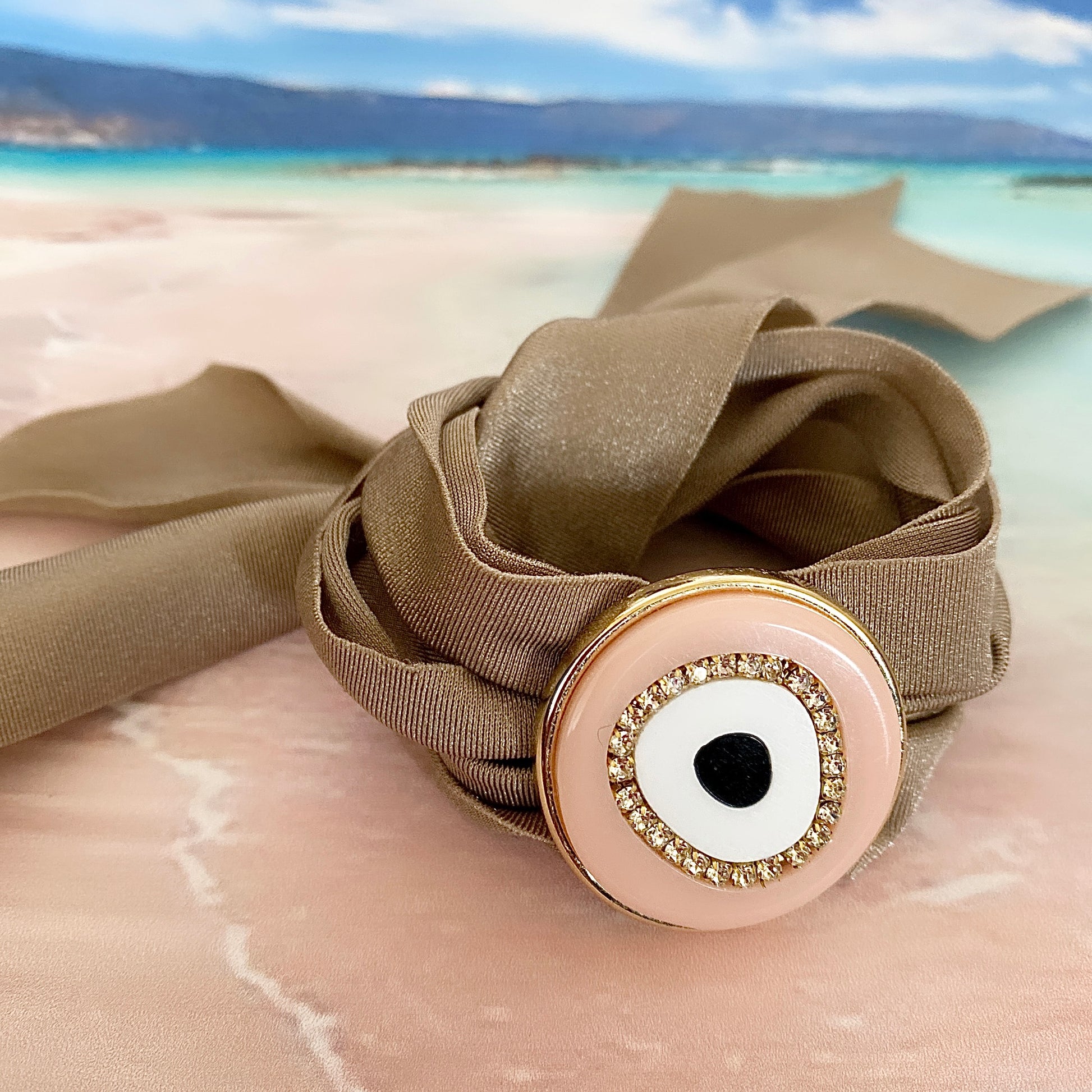 #3- Lycra stretch wrap with plexi & swarovski crystal eye charm (stretch)