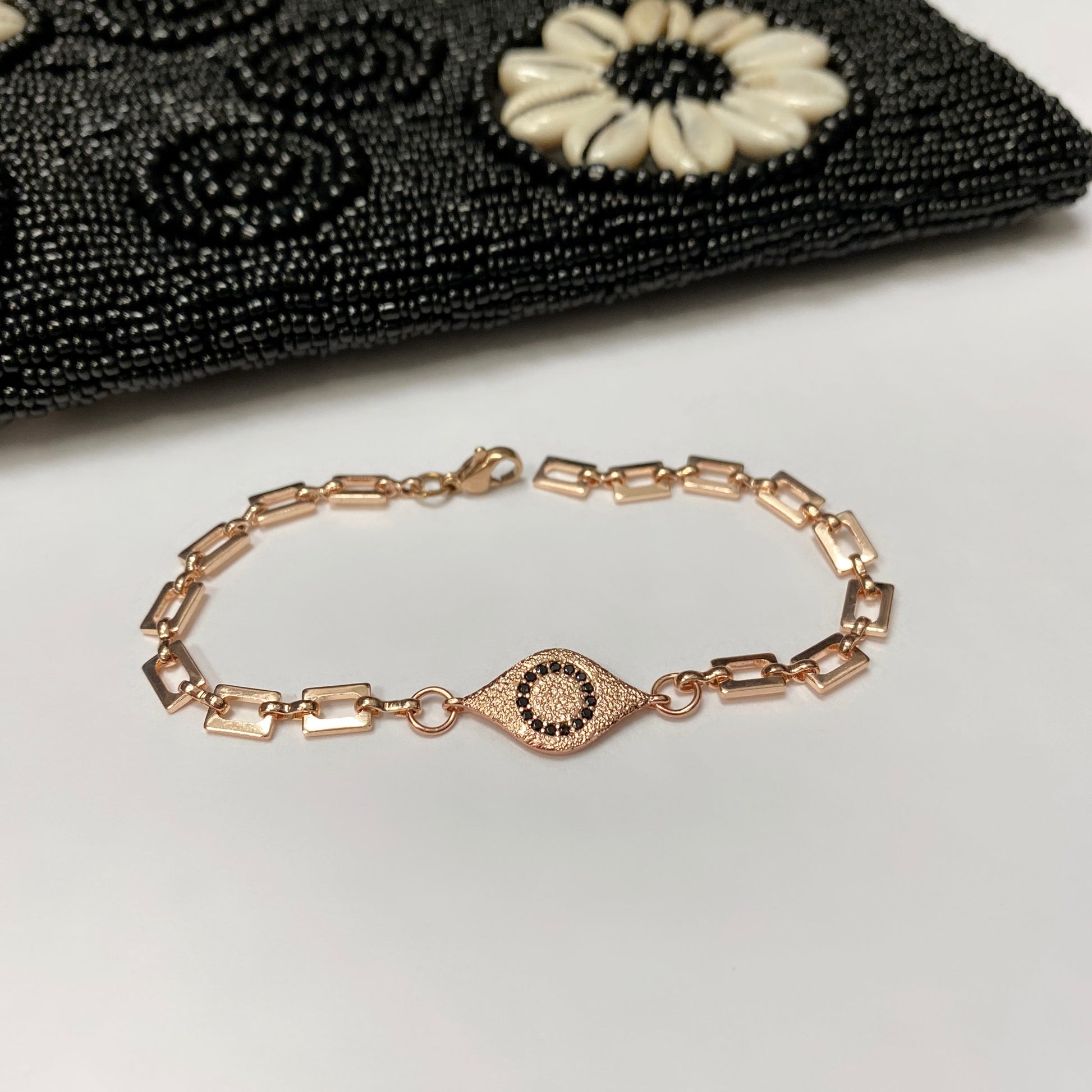 #3 Brass rose gold plated chain with rose gold plated cz eye,