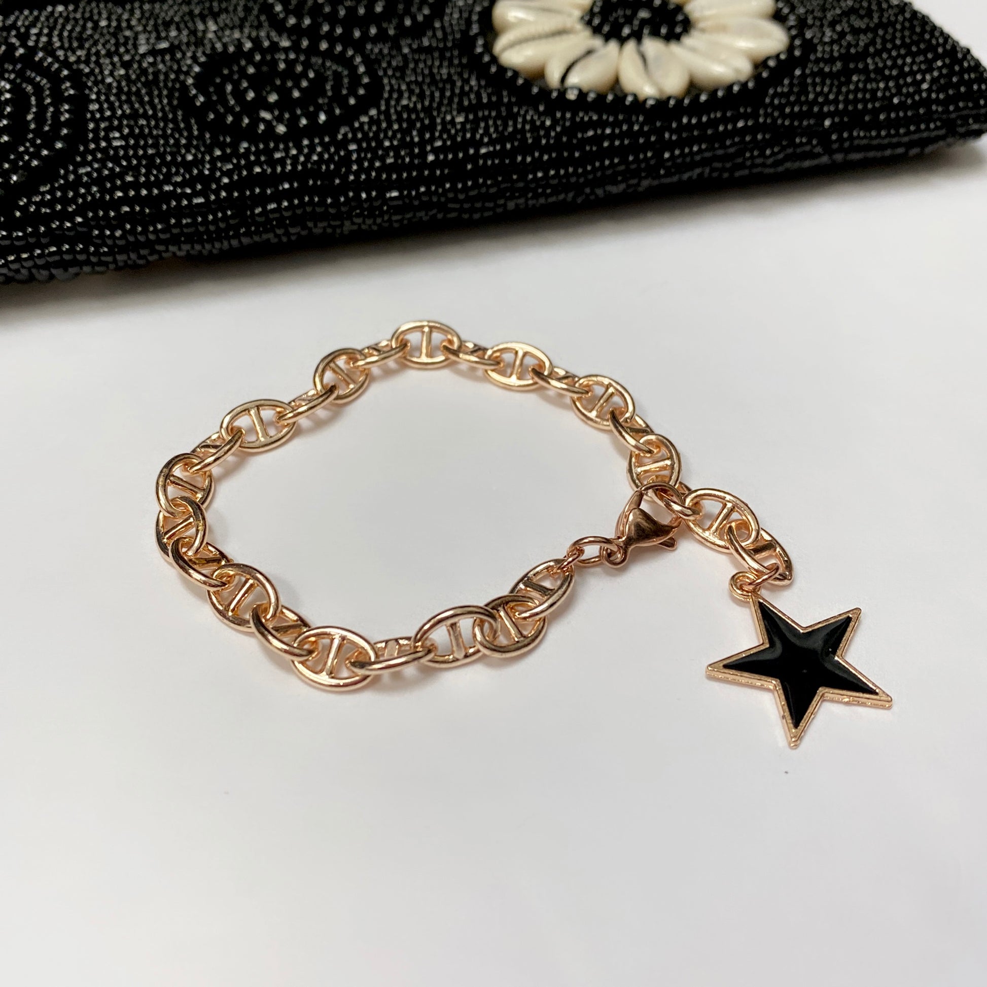 #6 Brass rose gold plated chain with rose gold plated enamel star,