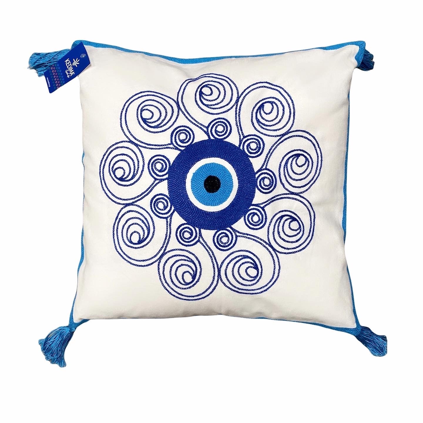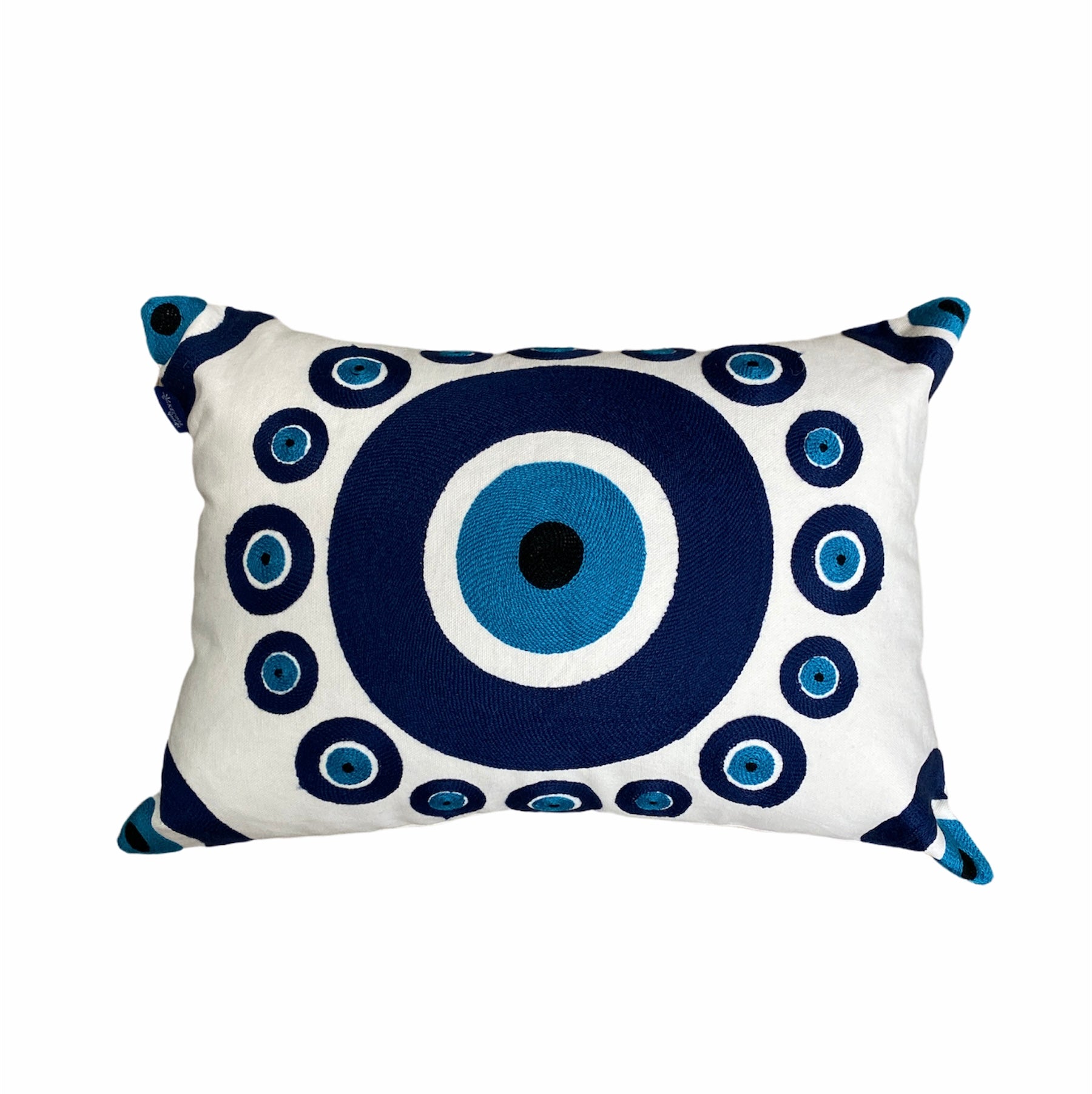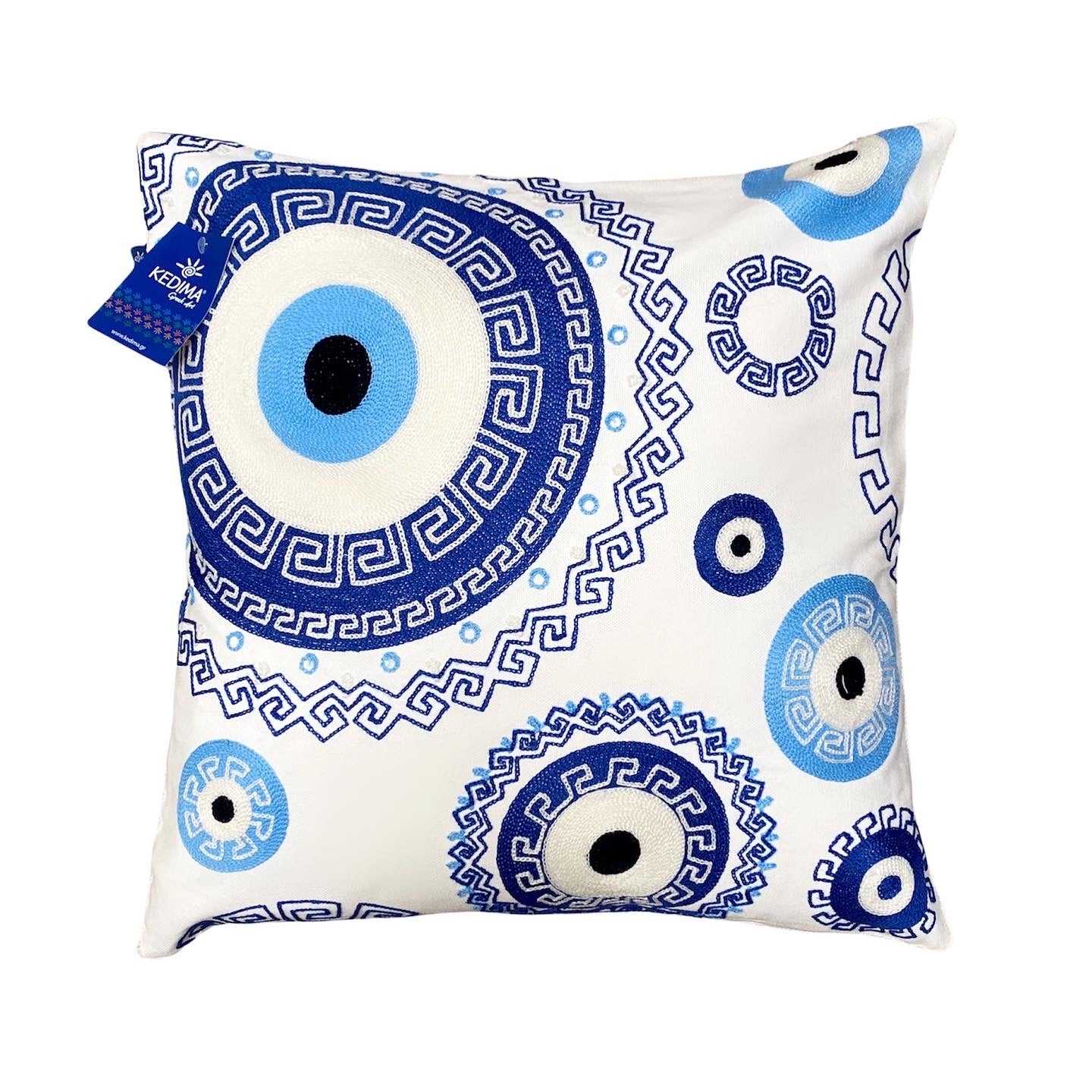 Gorgeous embroidered cotton pillow cases with various evil eye and colours. Add some color and protection from negative energy! Perfect for a living room area or your back yard!
