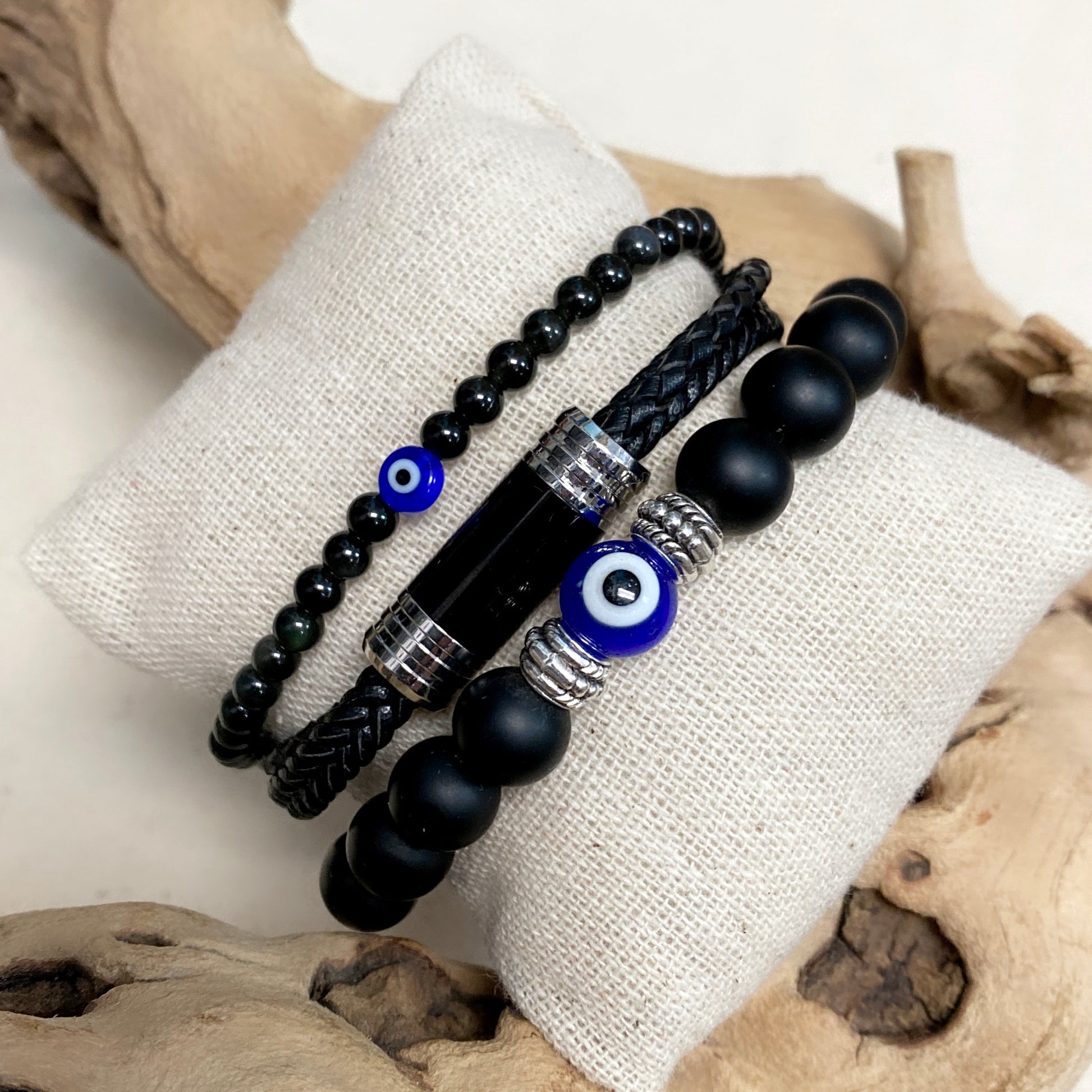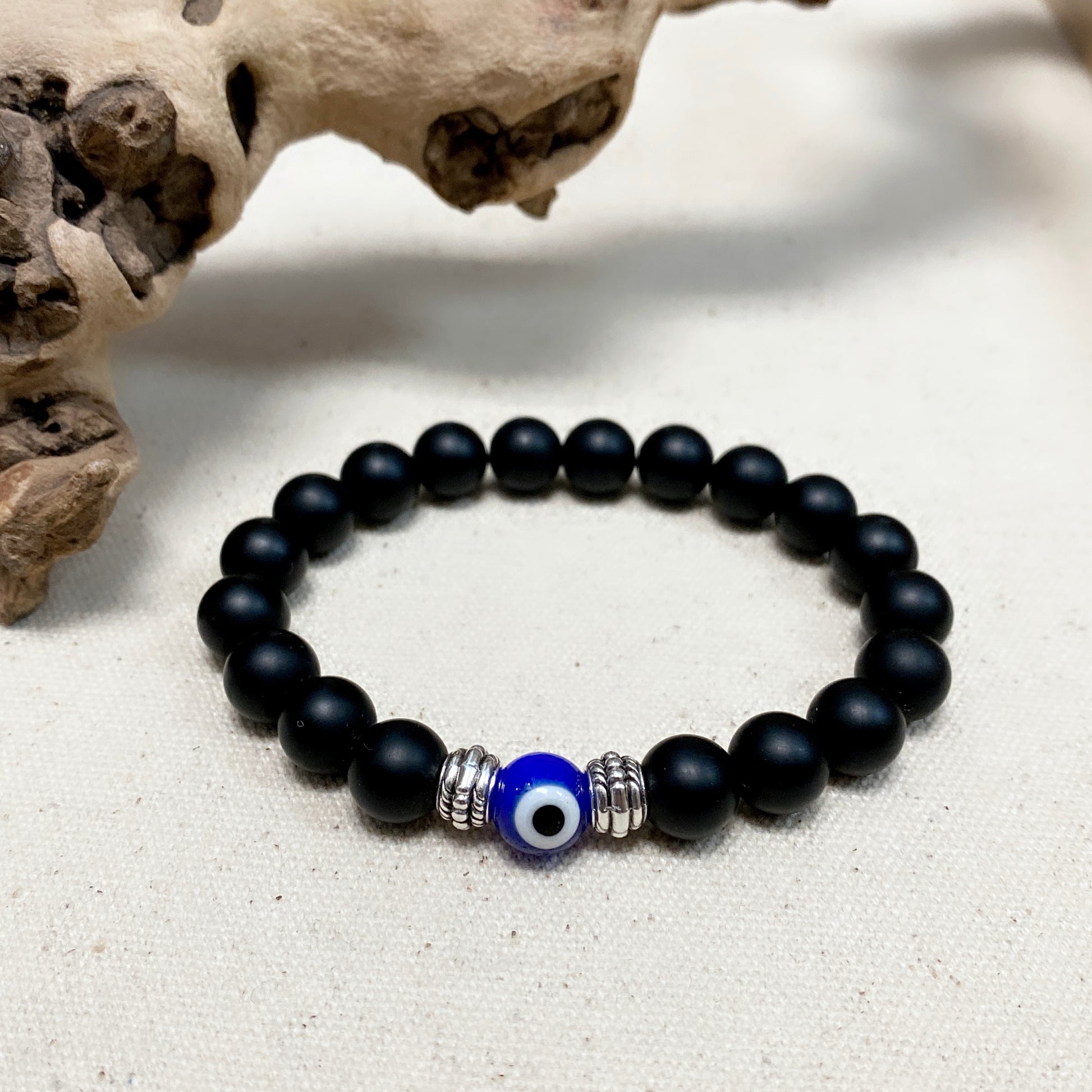 #3 Matte onyx 10mm with glass eye bead (stretch)